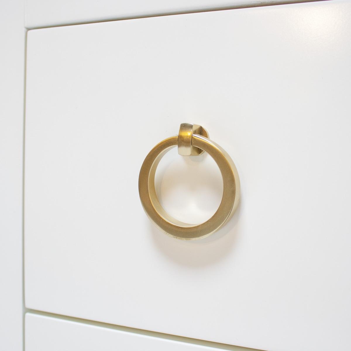 Sly and masterful, our Espionage Chest steals the show with its unique design. White lacquer is accented with brass pulls and sabots for a refined look.