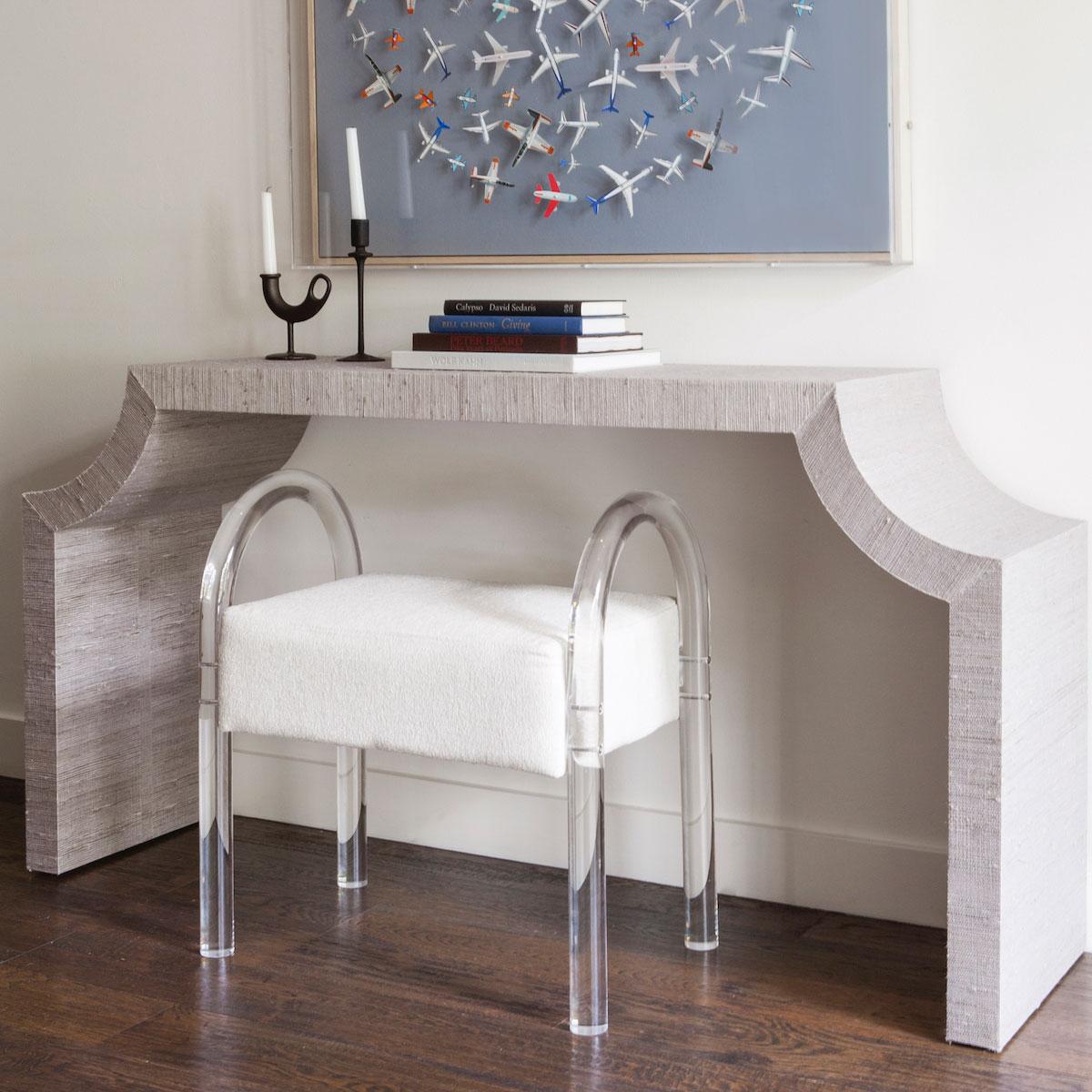 This acrylic and upholstered bench is the perfect additional seating for the end of your bed, an entryway or living room. Simple, yet glamorous.