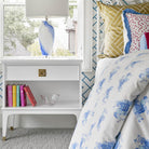 Our Liberation Chest is free to fit any decor you want it to! The white lacquer is accented with brass pulls and sabots for a touch of class.