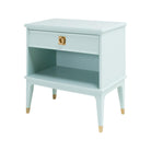 Our Liberation Chest is free to fit any decor you want it to! Polar Ice blue lacquer is accented with brass pulls and sabots for a touch of class.