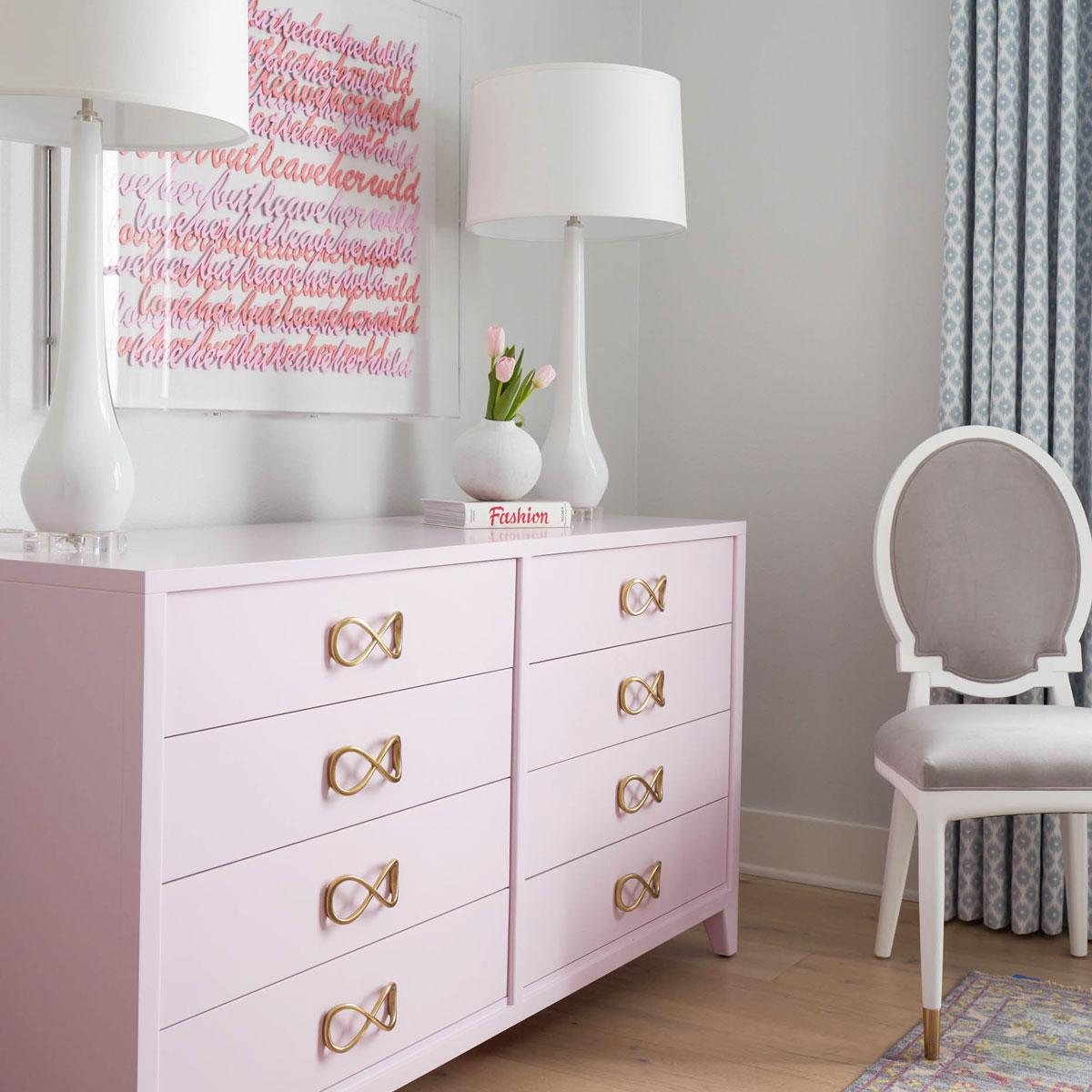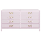 Dressed up with infinity bow hardware, this 8-drawer dresser is a simple showstopper. Soft blush pink lacquer with lilac undertones in a matte finish keeps it on the fun side. The Magritte is perfect for a nursery, bedroom, or even the entryway.