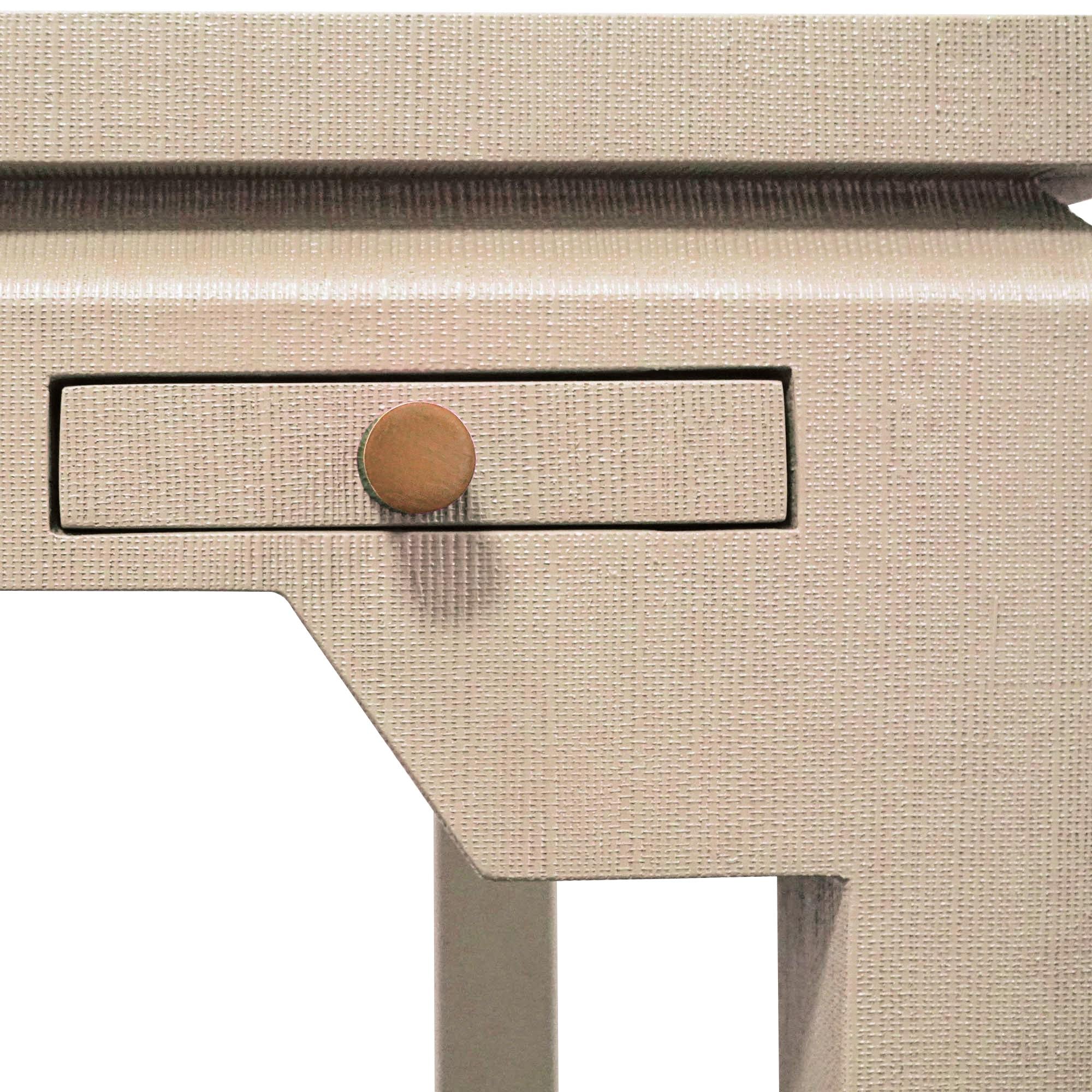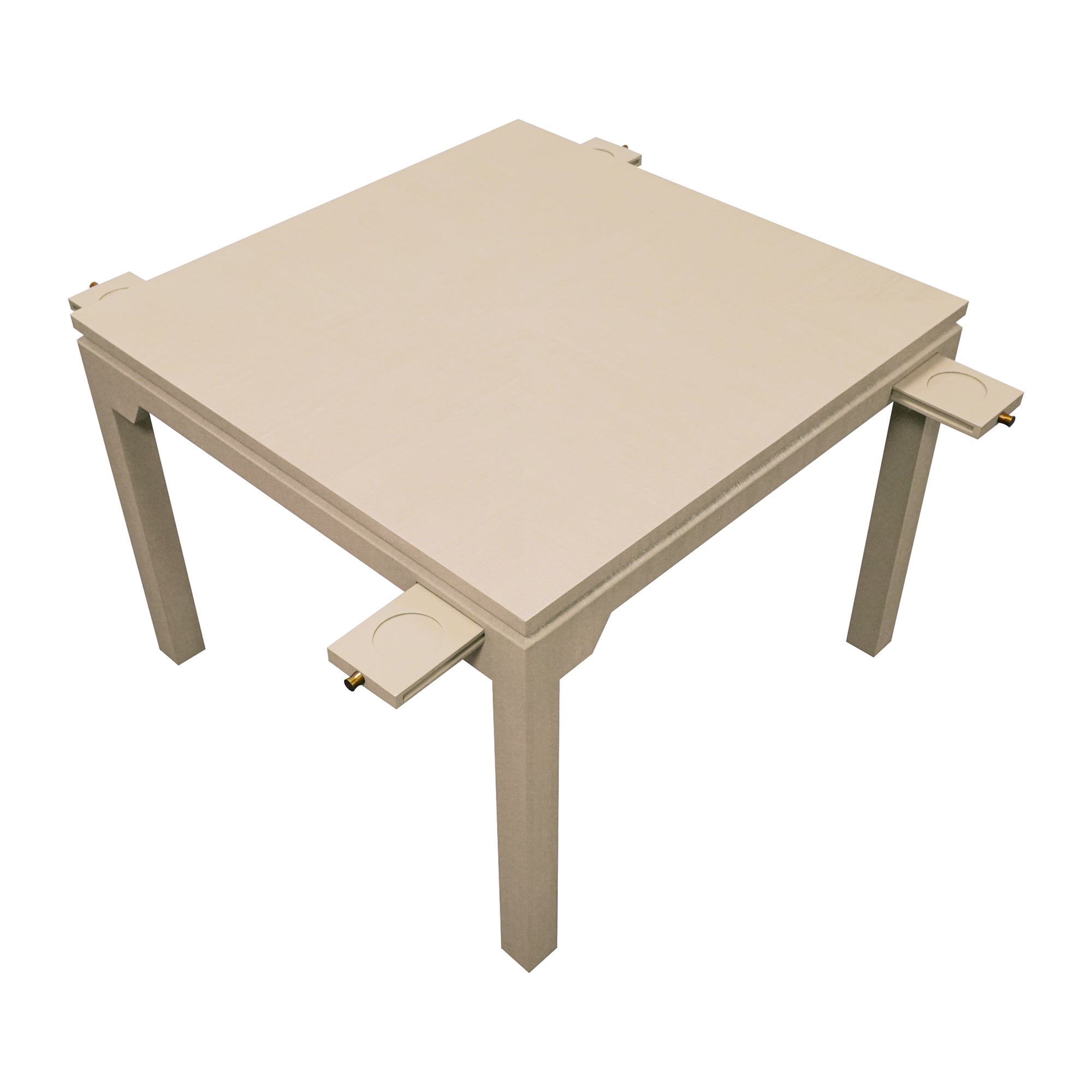With 4 push-close coasters adorned in delicate brass pulls, our Pass the Rosé Game Table is at your service. Meanwhile, Parsons legs and unique corner details give this table major dimension and visual appeal. Featuring a stunning and durable faux sand grasscloth, this one's got extra intrigue with the finish going in opposing directions atop.