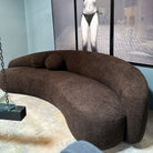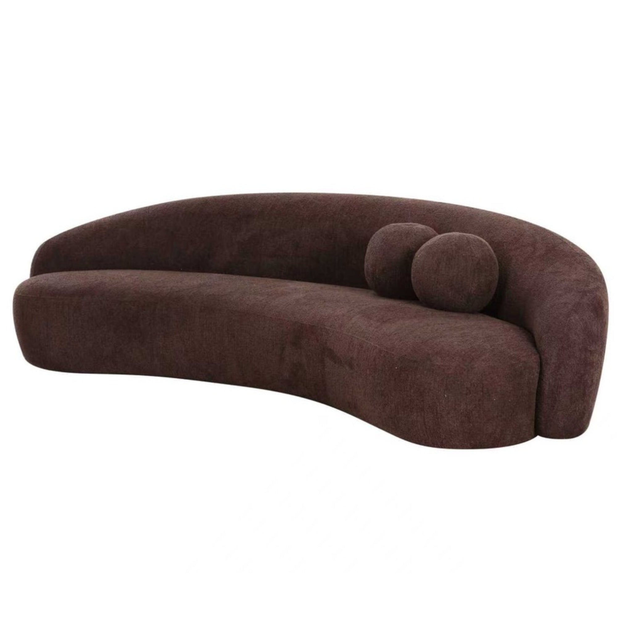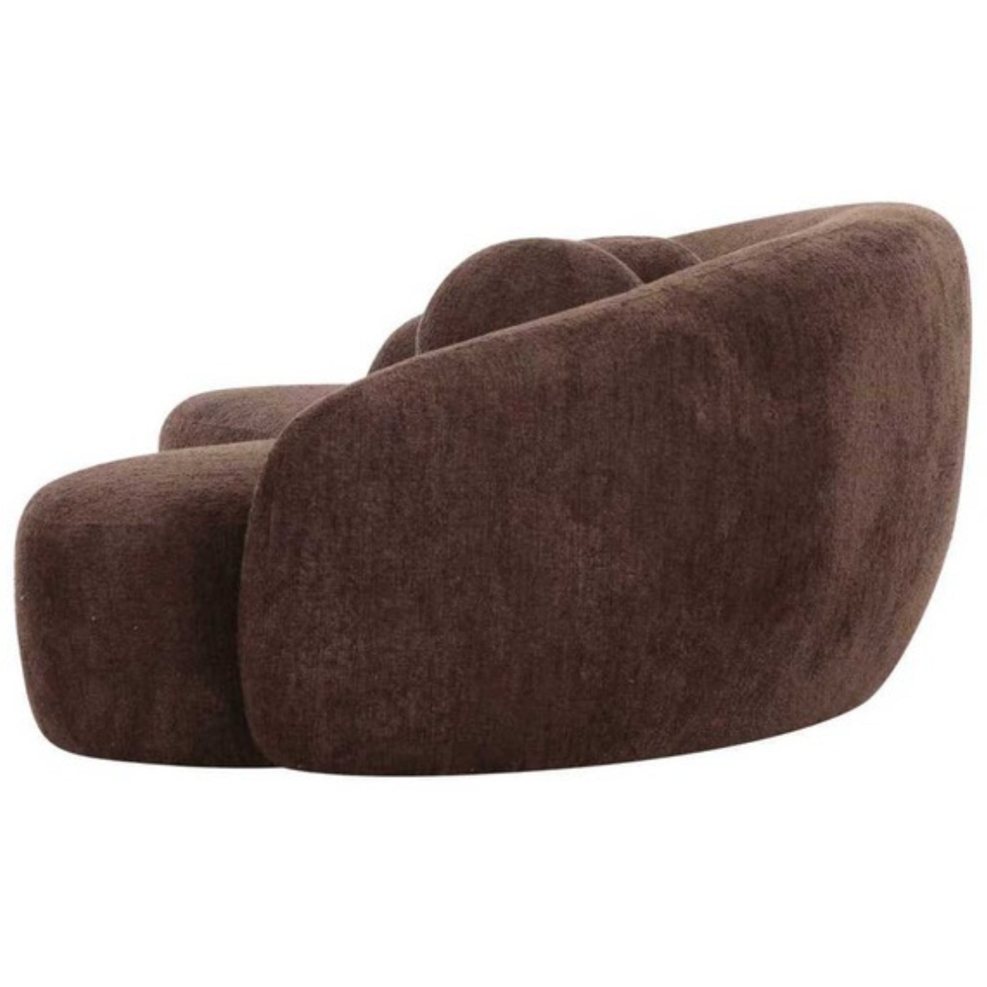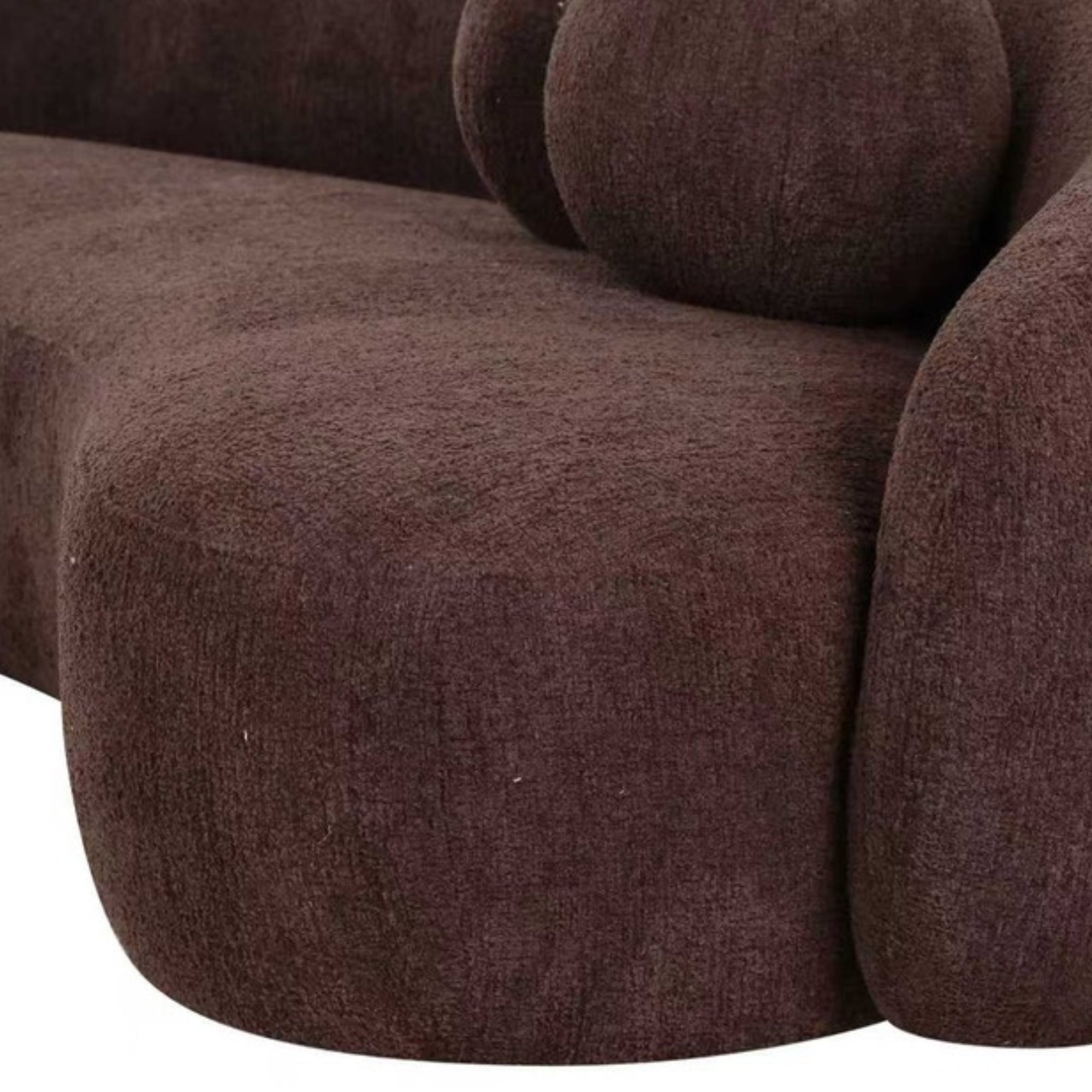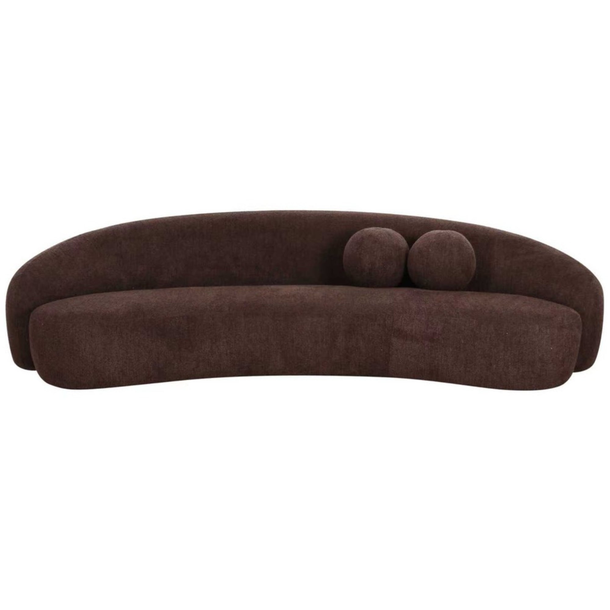 Smooth curves combine effortlessly with a soft chocolate chenille in the design of this sculptural seat. Matching circular pillows provide back support and double as the perfect accents to set this piece off.