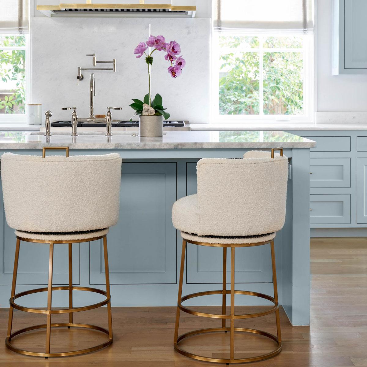 Rosita Swivel Counter Stool in Ivory Boucle