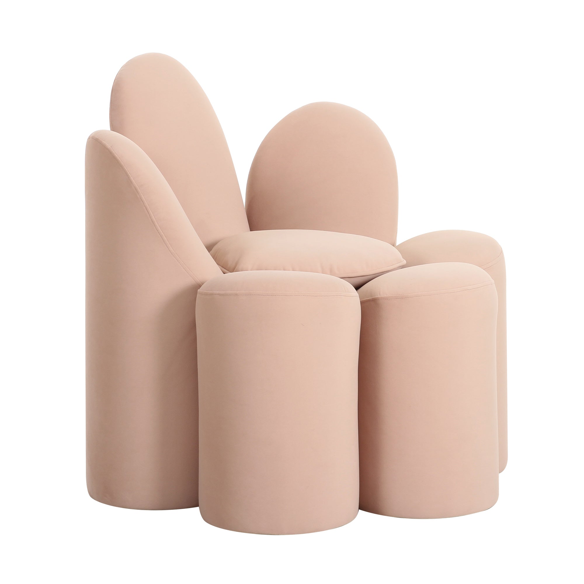 Our Selene Chair brings on the charm with plush, postmodern petals that surround a circular center perch. Her blushworthy fabric adds a subtle feminine touch, while the center seat is finished with matching piping for a clean look. Who needs flowers when you can have Selene?