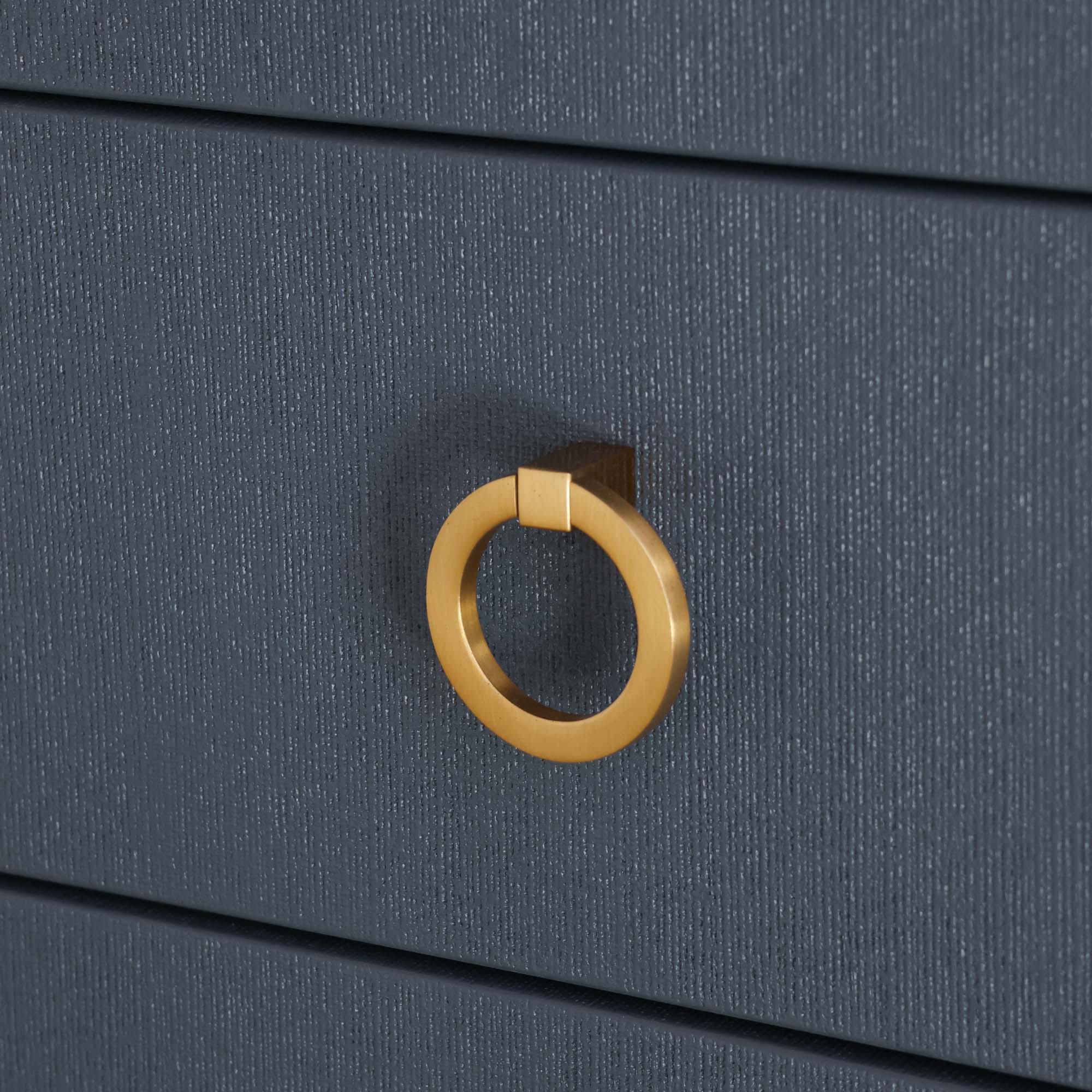 - Engineered wood with a faux linen finish in navy