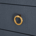 Unlock the secrets of sleek design with our Sleuth Chest. With its clean lines and unique silhouette, the Sleuth brings a touch of drama to your space, while the brass ring pulls and sabot feet add sophistication.