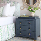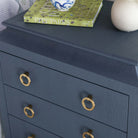 Unlock the secrets of sleek design with our Sleuth Chest. With its clean lines and unique silhouette, the Sleuth brings a touch of drama to your space, while the brass ring pulls and sabot feet add sophistication.