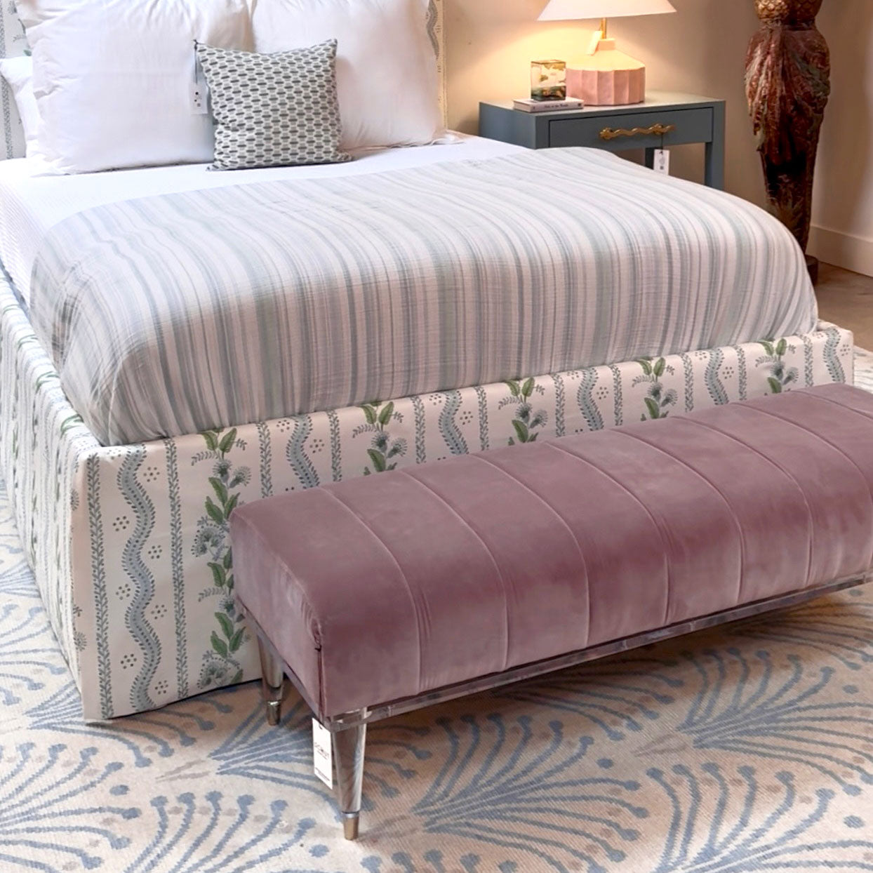 This acrylic and upholstered bench is the perfect additional seating for the end of your bed, an entryway or living room. Barely there, but makes an impact.