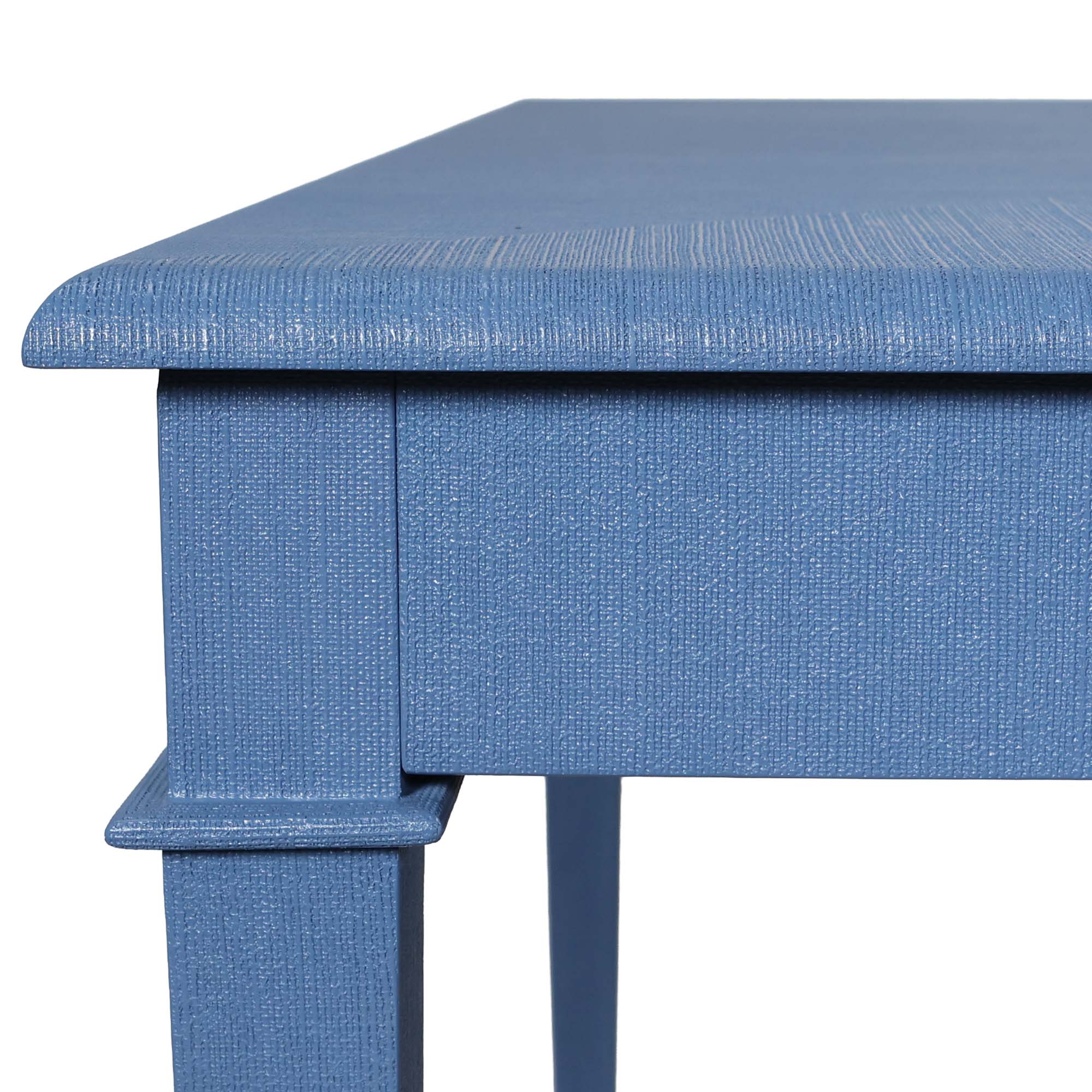 With 4 push-close coasters tucked into each corner and finished with petite brass pulls, The Parlor Game Table is ready for every shuffle, sip, and showdown. The tapered legs, subtle step-detail corners, and polished brass sabots bring a refined edge to its classic silhouette. Wrapped in a stunning and durable blue faux linen, the tabletop’s opposing directional weave adds extra depth and dimension.