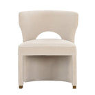 This architectural queen features a fully upholstered tripod frame with cutout back detail. Rectangle brass hardware on the back and brass sabot detailing give Valerie extra flair.
