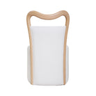Our Waters Dining Chair reimagines modern elegance with its distinctive W-shaped curve in both the back and base. The warm oak wood frame contrasts beautifully with the soft ivory linen upholstery that wraps seamlessly to the floor, creating a sleek, flowing silhouette.