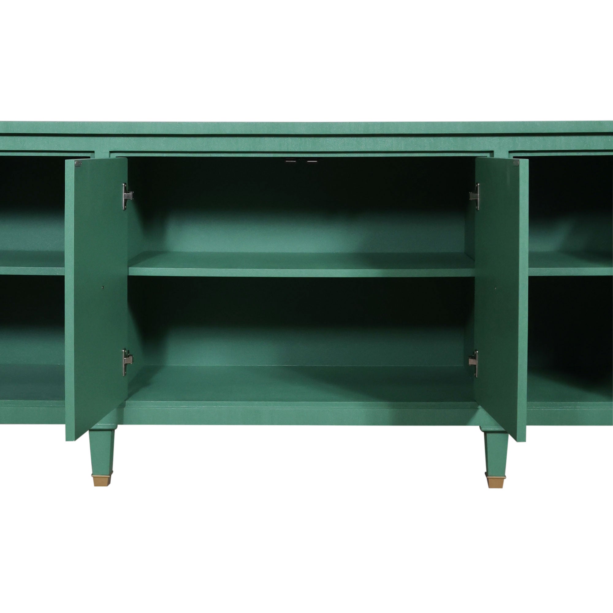 Tailored, timeless, and just the right amount of unexpected. The Watson Credenza in Green Linen blends classic craftsmanship with a modern point of view. Dressed in a fresh, textured green finish and accented with antique brass ring pulls, Watson is as functional as he is dashing.