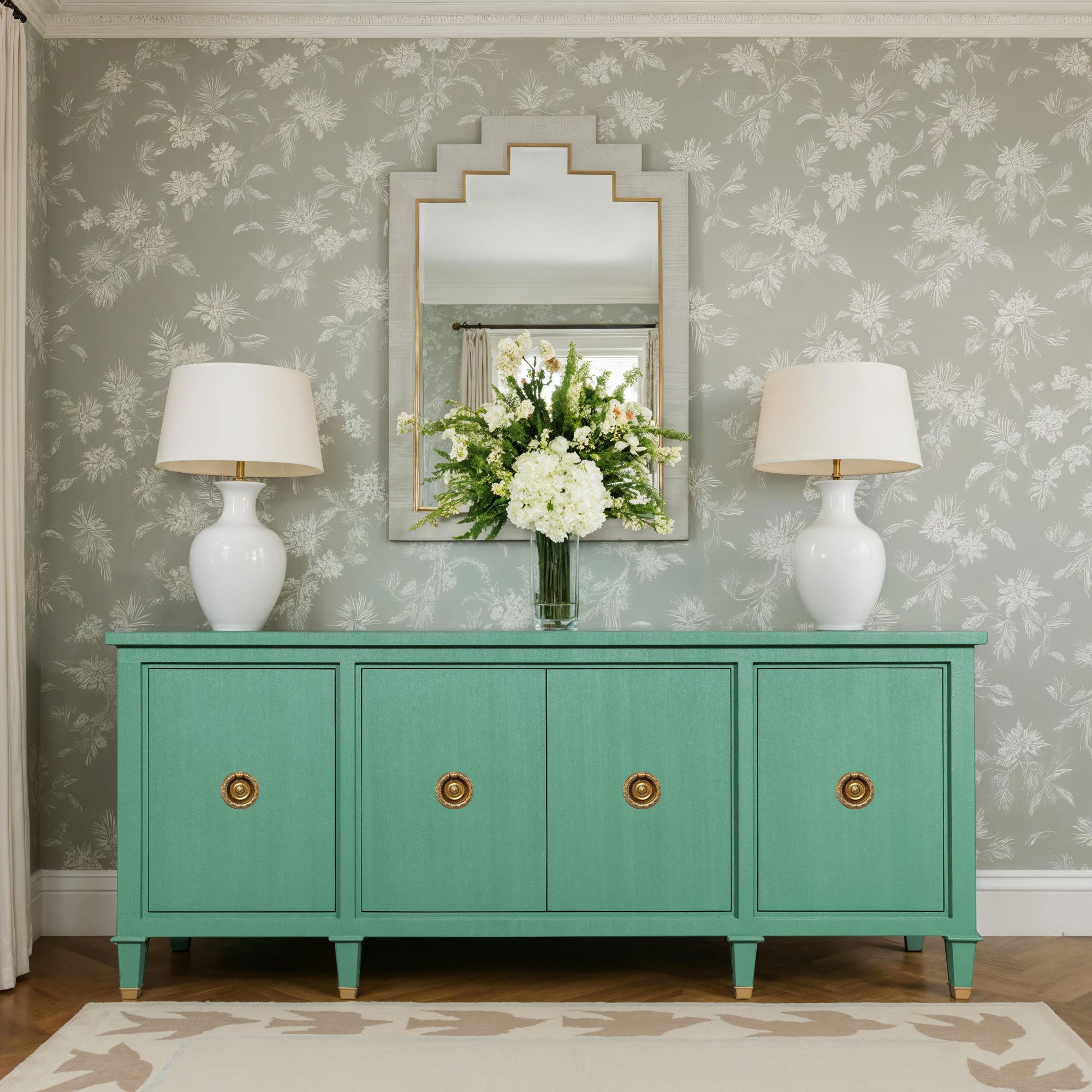 Four doors conceal generous storage, while tapered legs with brass-capped feet add a touch of quiet luxury. From dining room anchor to entryway showpiece, this credenza proves that storage can absolutely steal the spotlight.