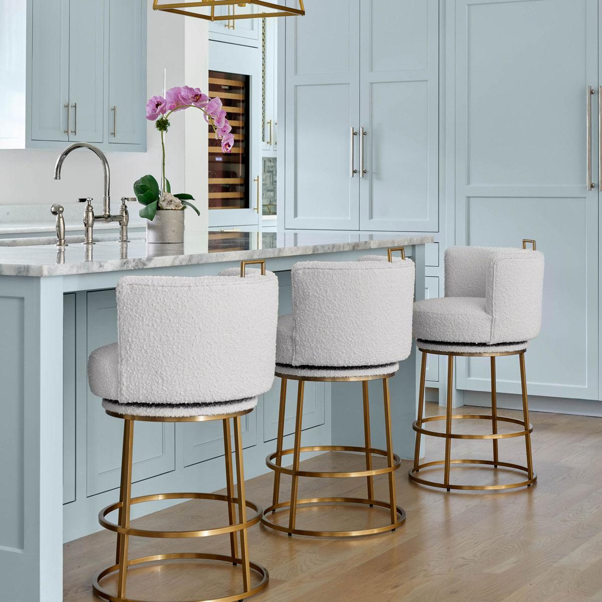 Rosita Swivel Counter Stool in Ivory Boucle