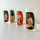 Add a splash of sexiness to your barware with this 1970's "Sip and Strip" set of four highball glasses, each adorned with a nude photographic portrait.