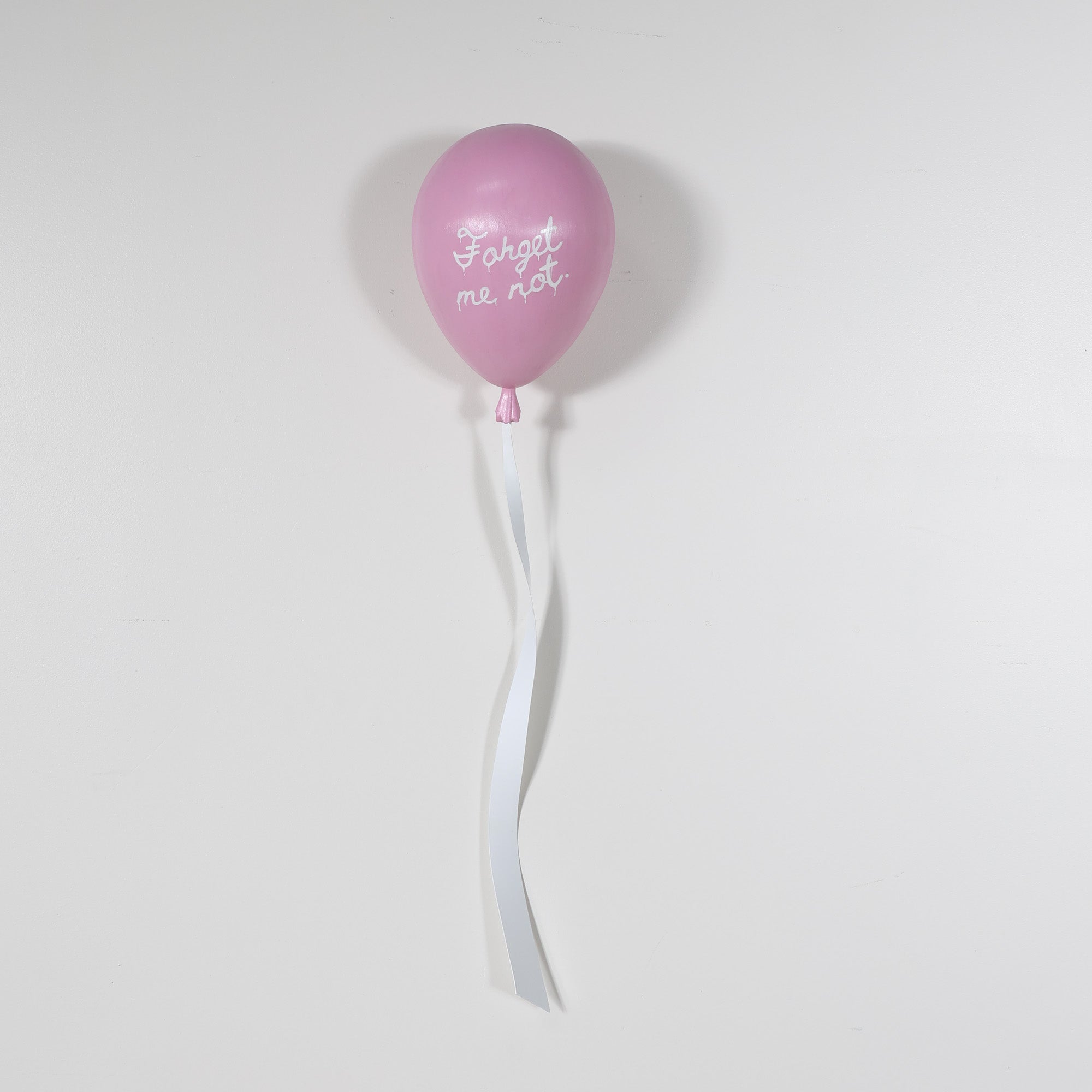 From the Tat Frederick studio, The Days is a 3D sculpted balloon, crafted in sleek metal, with a glossy light pink paint job that makes it POP! The lacquered ribbon detail adds an extra touch of realism, making it appear as if it’s floating effortlessly on your wall.