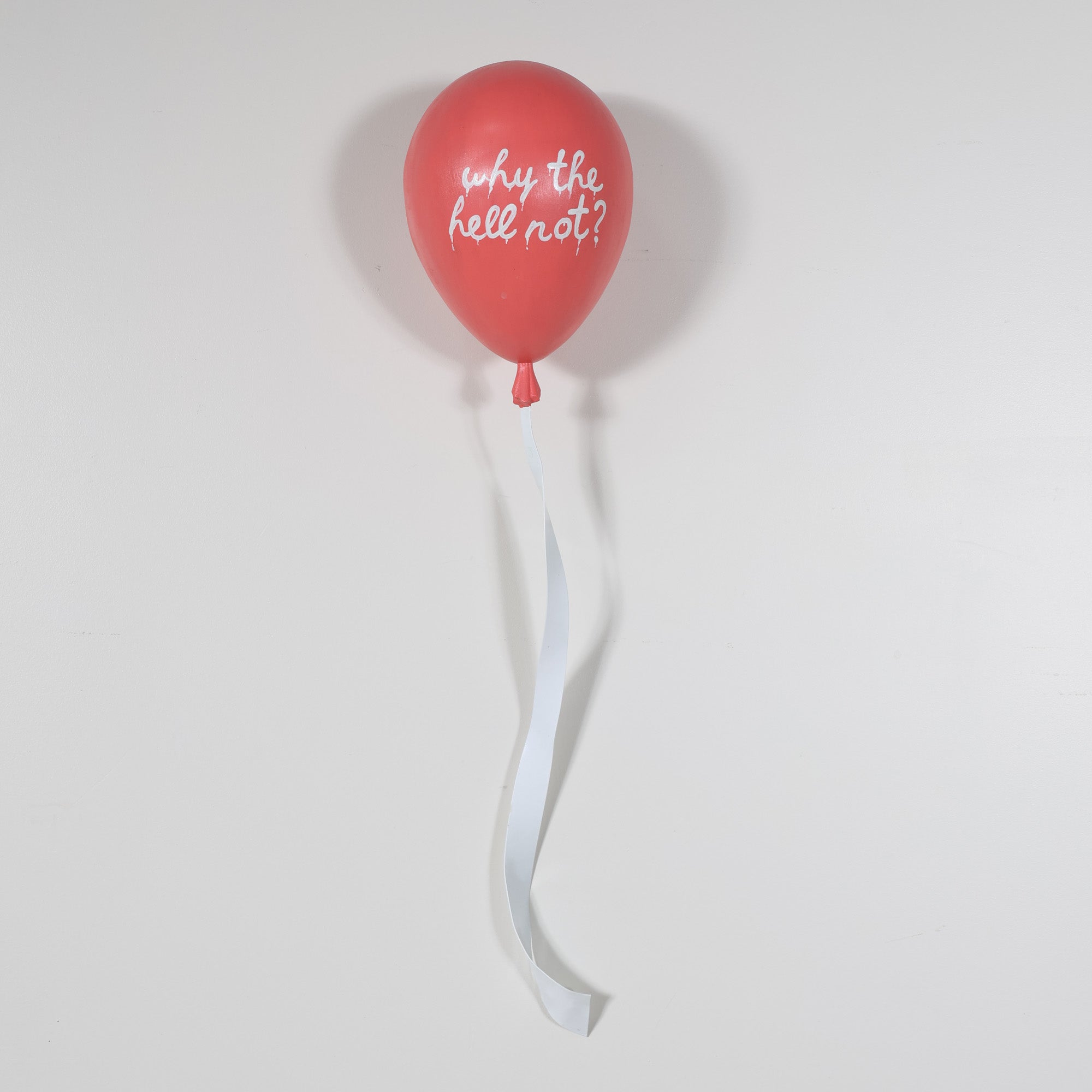 From the Tat Frederick studio, The Days is a 3D sculpted balloon, crafted in sleek metal, with a glossy persimmon paint job that makes it POP! The lacquered ribbon detail adds an extra touch of realism, making it appear as if it’s floating effortlessly on your wall.