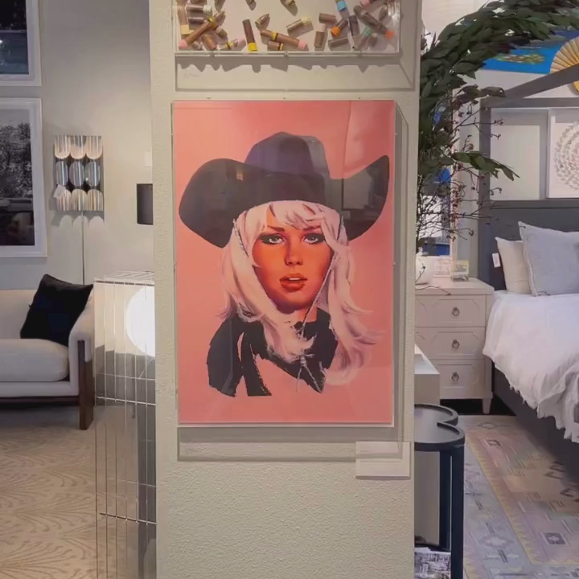 Depicting a cowgirl and her favorite red lippie, Dimestore Cowgirl features lenticular printing technology that creates the illusion of movement and depth when the viewer looks from different vantage points. You've got to see it to believe it! Fabulously sized to make a statement, this piece is ready for a moment.