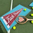 A fresh take on varsity nostalgia and the classic felt pennant. Set against a turquoise ground, the crimson banner shouts what every tennis purist is secretly thinking: long live the original game.
