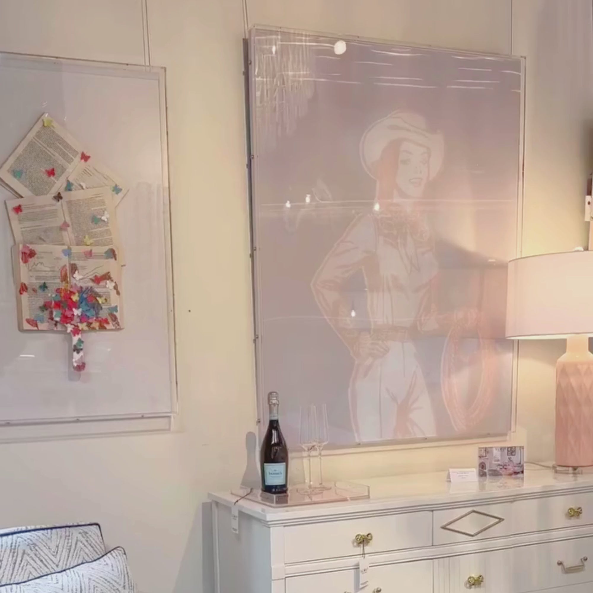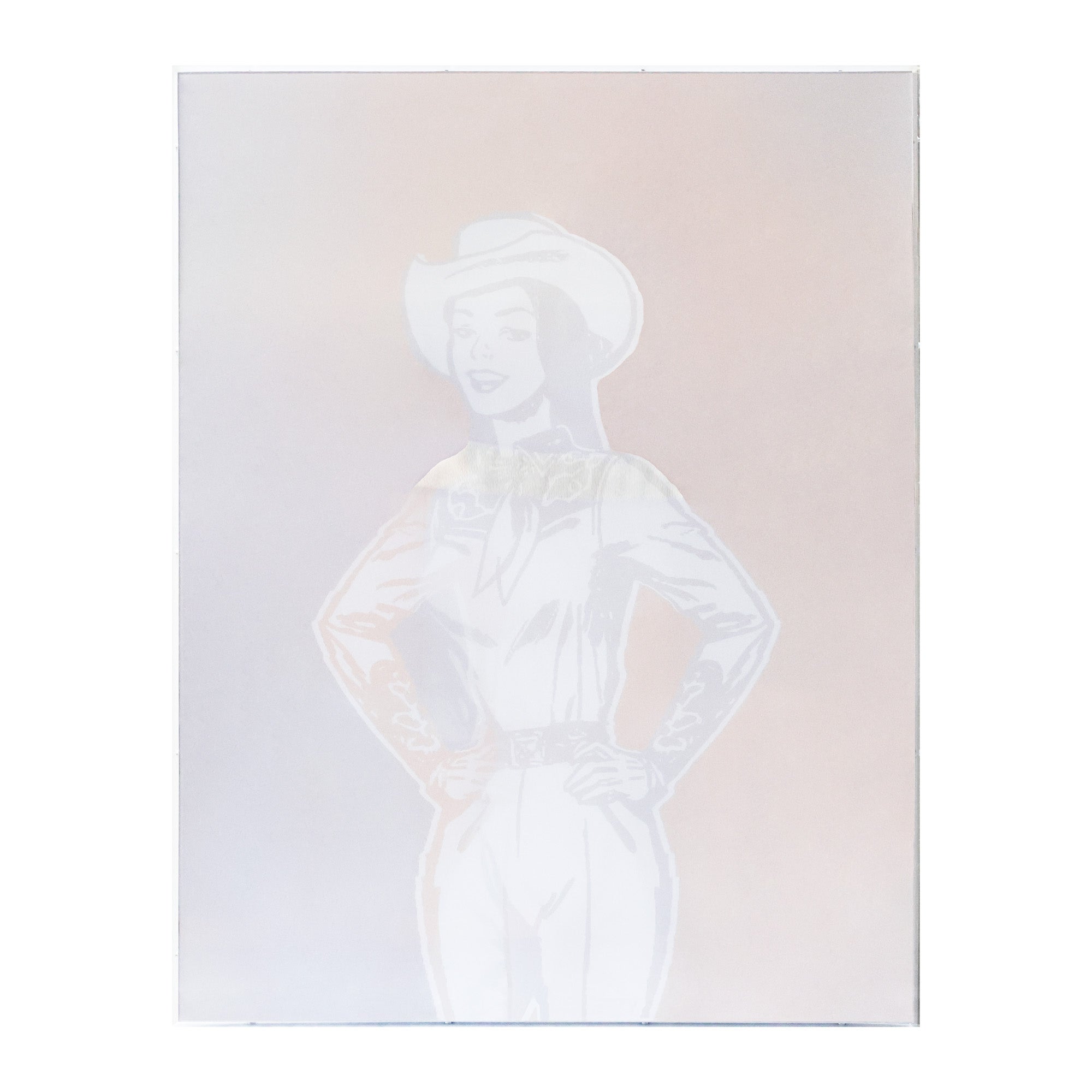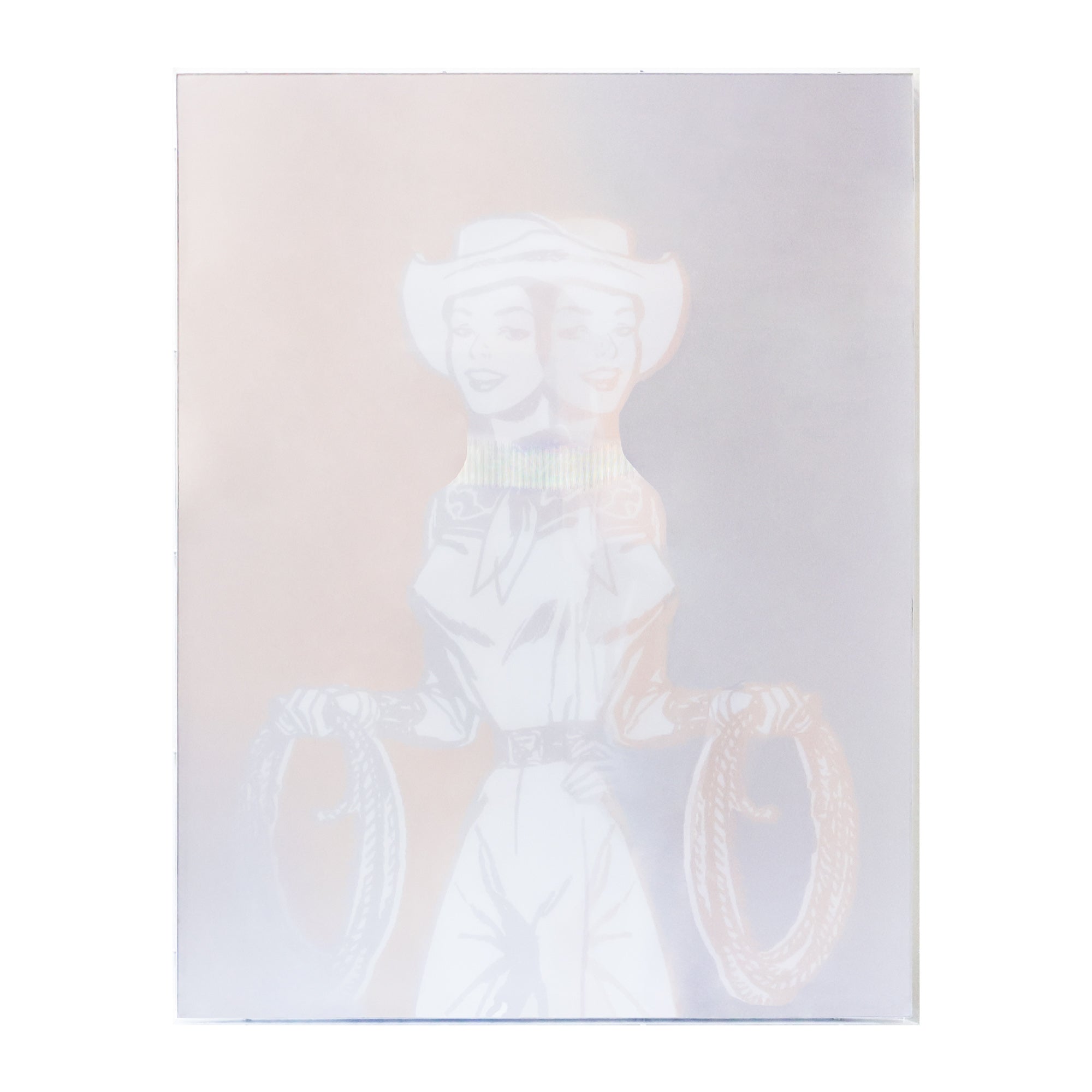 Depicting a cowgirl and her lasso in motion, 'The Round Up' features lenticular printing technology that creates the illusion of movement and depth when the viewer looks from different vantage points. You've got to see it to believe it!