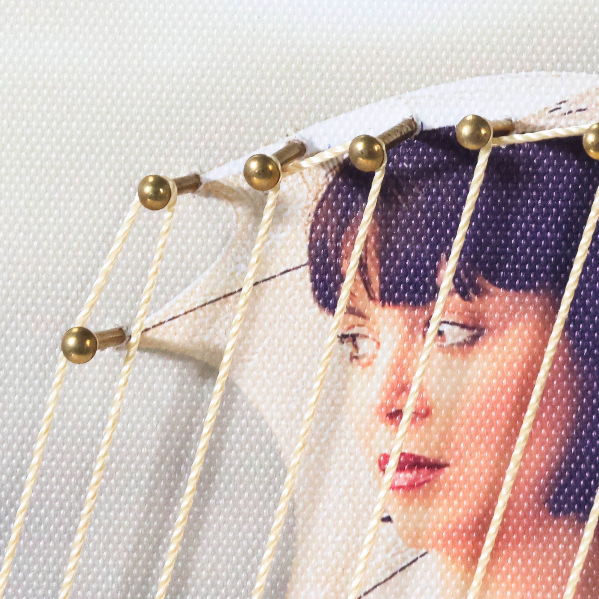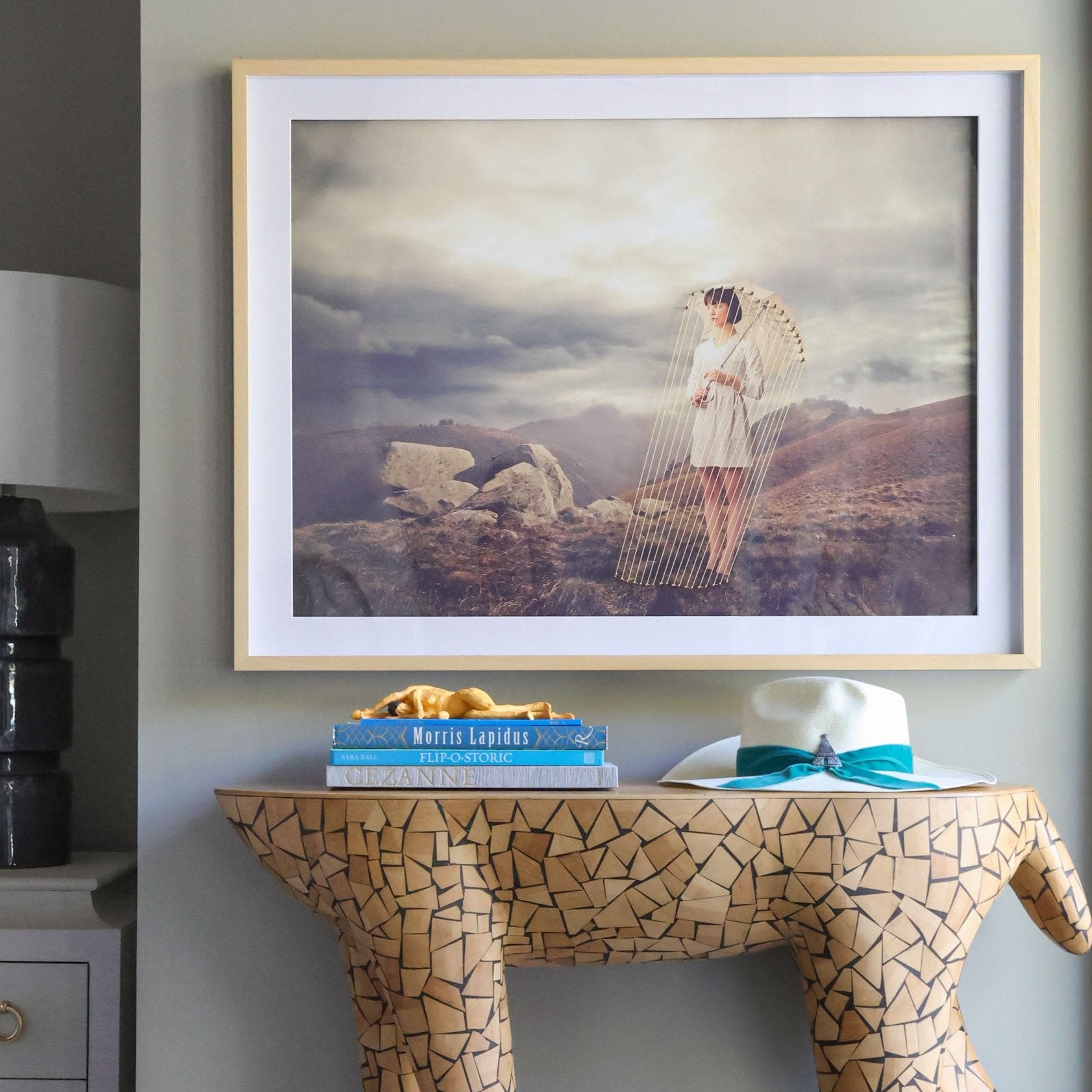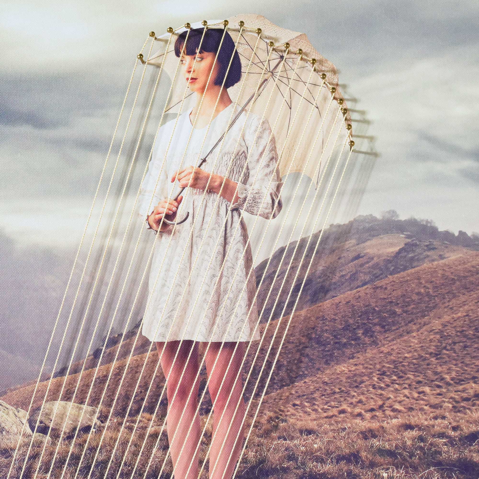 From the Tat Frederick studio, the Umbrella String Series features printed photographs that have been framed and matted in white. Hand-placed pins hold strings that come down from the pictured umbrella for an eye-catching linear effect.