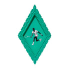 The Wimbledon Series captures the elegance and athleticism of tennis through hand-painted players frozen mid-serve, volley, and smash. Each figure is set against bold jade-green diamond frames, turning classic sport into pop-iconography.