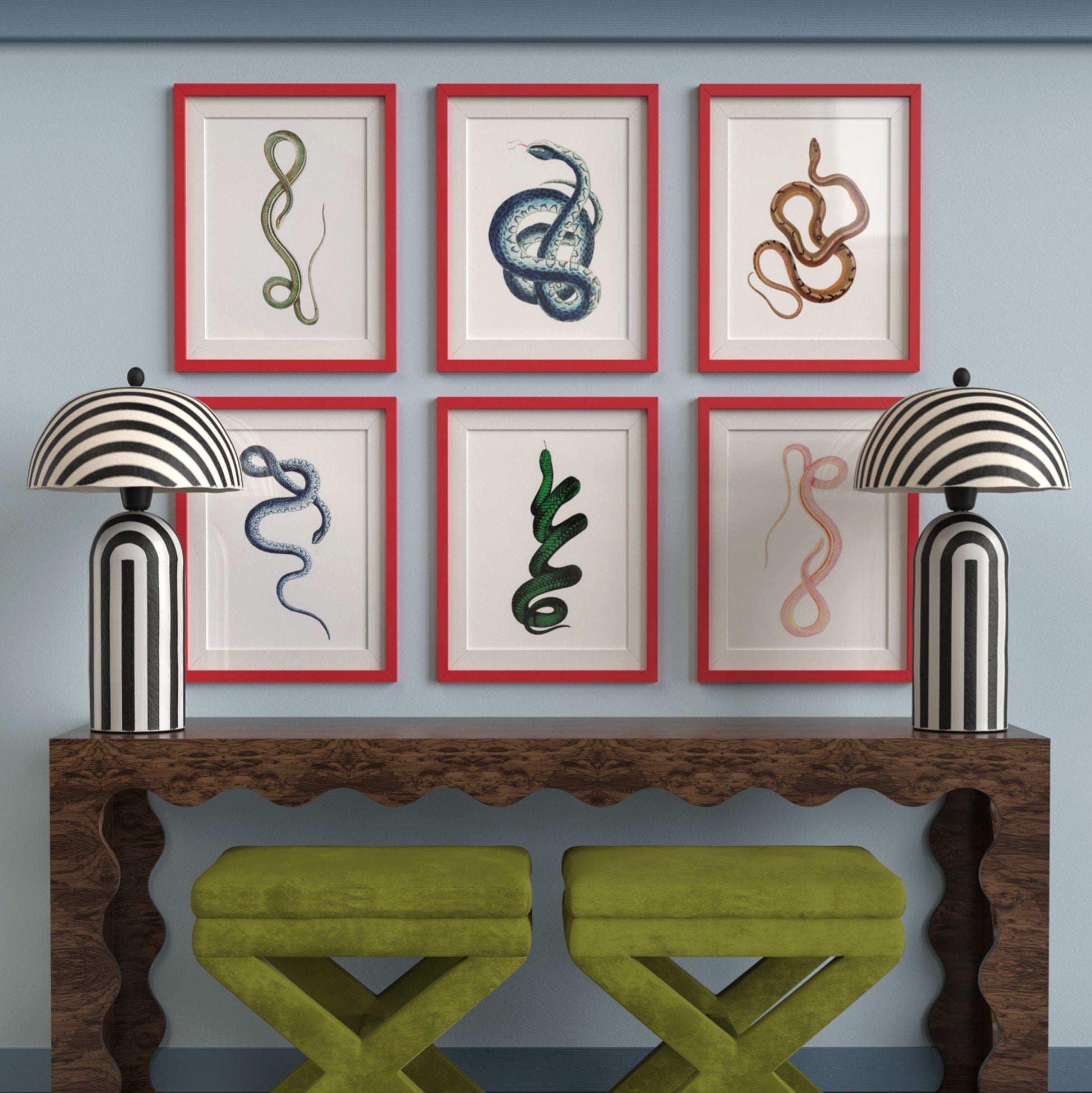 Wrapped in red, these snakes are ready to rattle your space with slithering style. 6 versions in our exclusive "Bite Back Series" to mix and match your collage.