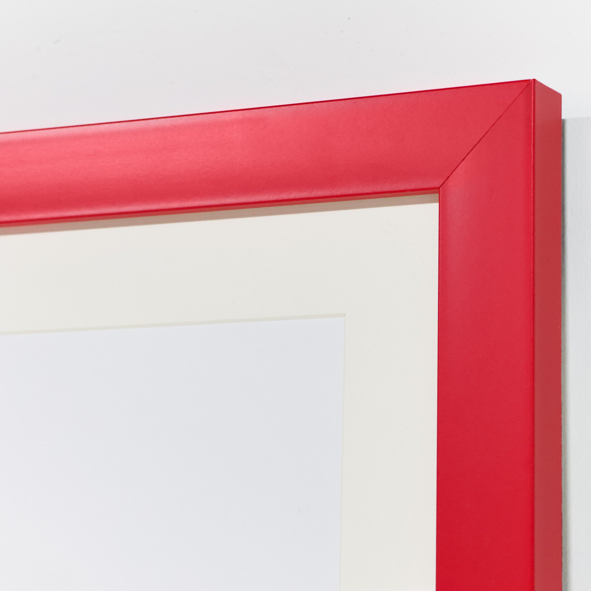 Watercolor printed on archival paper with a ivory matte and red painted wood frame.