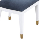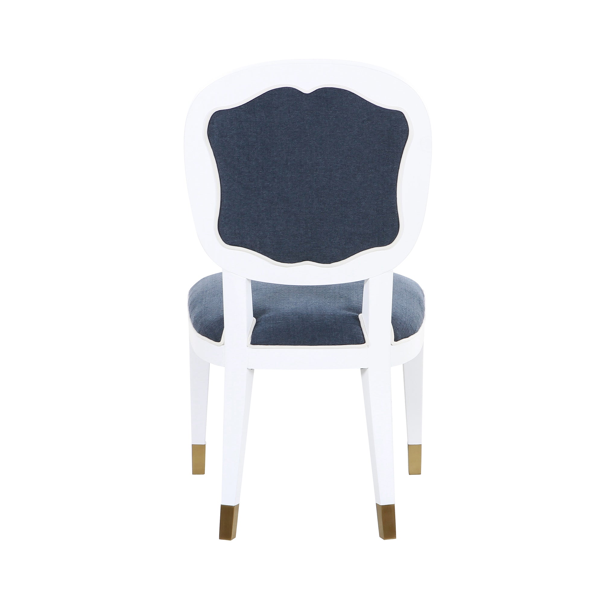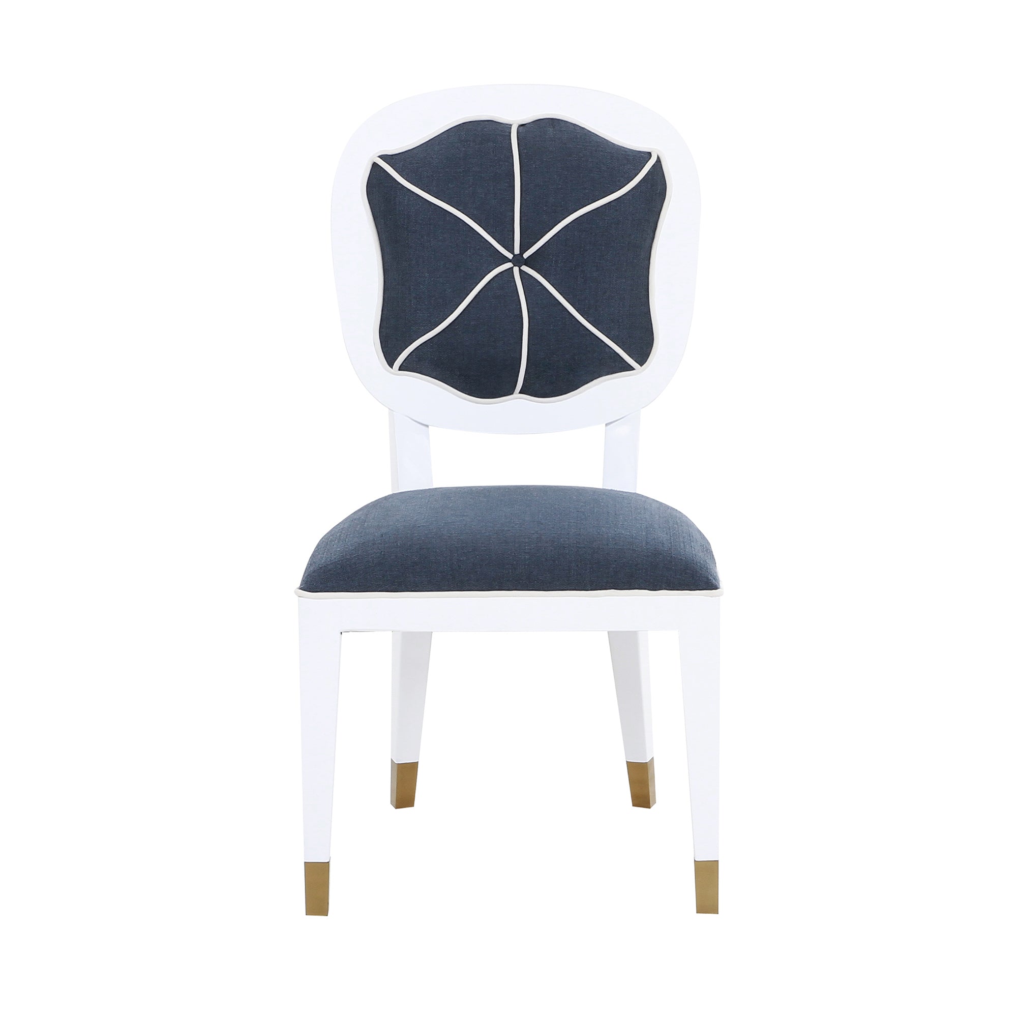 Straight lines set off the rounded backrest on this sweet seat, while blue tweed upholstery provides a timeless and chic feel. Contrast piping in ivory adds a touch of intrigue to this dining chair. Elevated entertaining at its best!
