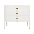 Our Clancy Chest is a cool, collected classic that still knows how to have a little fun. Dressed in matte white lacquer, this three-drawer beauty brings a fresh, polished look to any room while keeping things playful with its blue tassels and brass hardware.