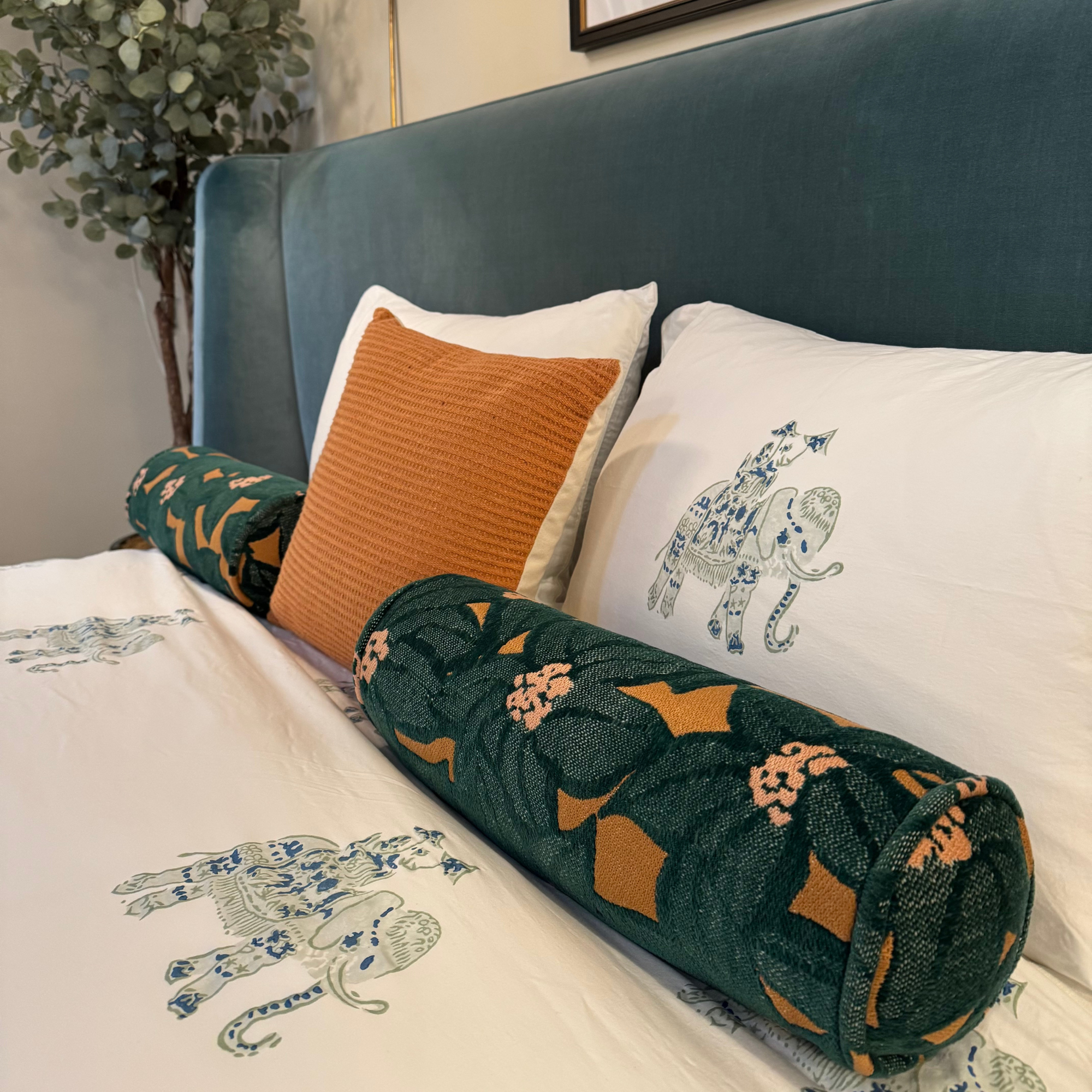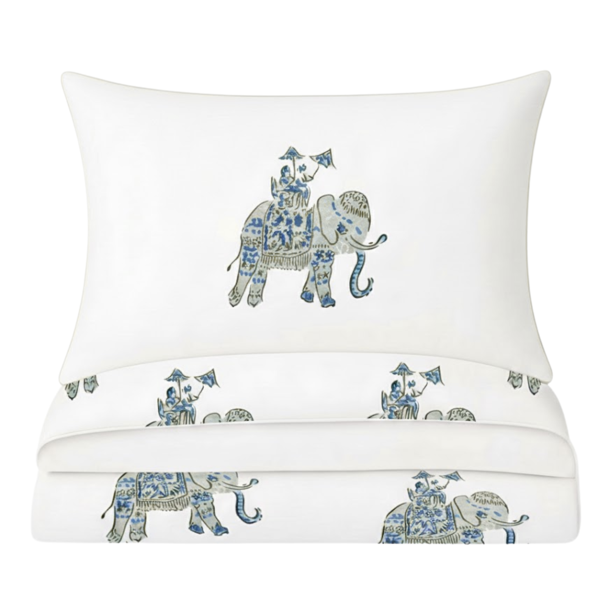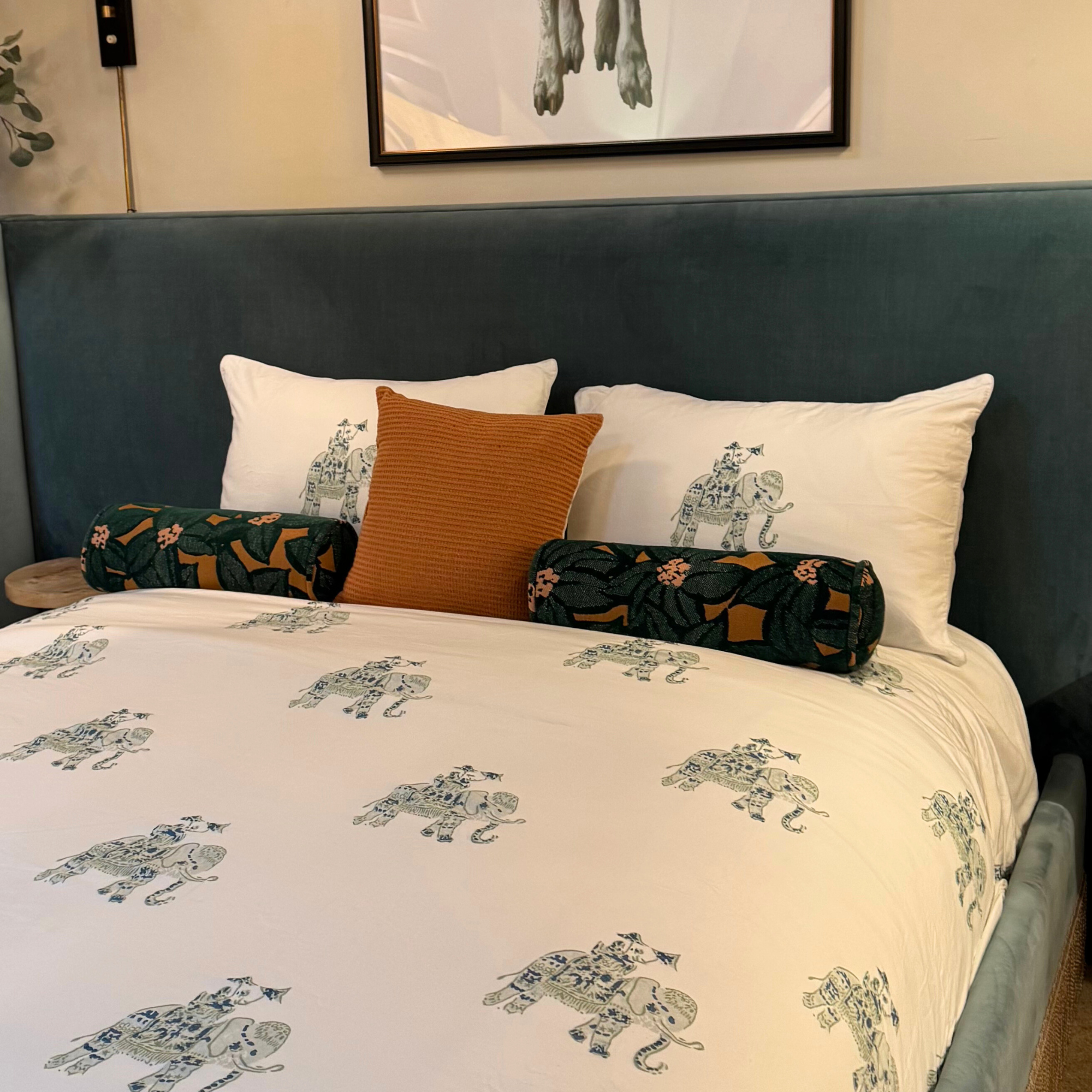 Bring a little magic to your bedroom with this block-printed elephant duvet set.