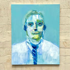 This captivating vintage abstract portrait is a one-of-a-kind artwork that brings both intrigue and elegance to any space. Painted in cool, soothing shades of blue and green, this portrait captures the essence of expressionism with its layered brushstrokes and fragmented design. The artist’s unique style creates a compelling, almost ethereal presence, inviting viewers to interpret the emotions behind the visage.