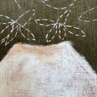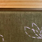 Materials: Oil pastel and hand embroidery on raw green linen