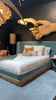 In Stock Boudoir Queen Bed in Donatella Peacock with Fringe in Perla