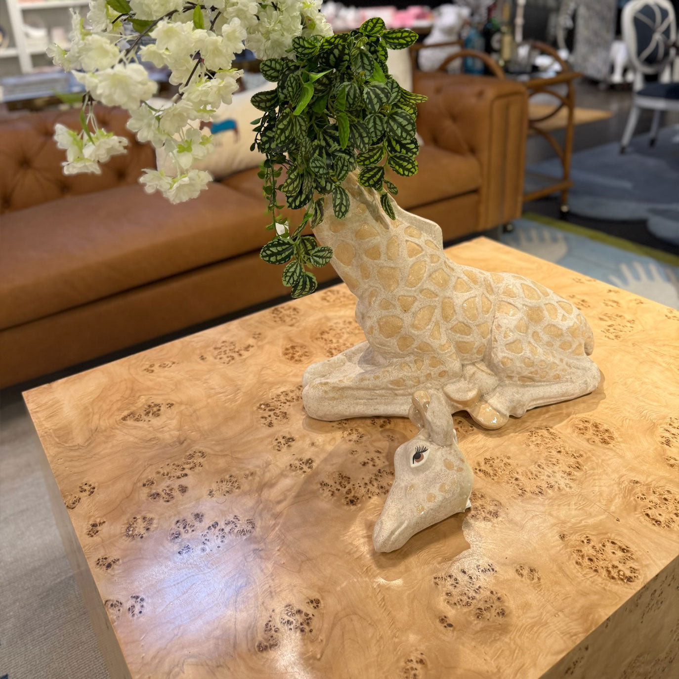 In Stock Calhoun Coffee Table 48x36 in Golden Pecan Mappa Burl