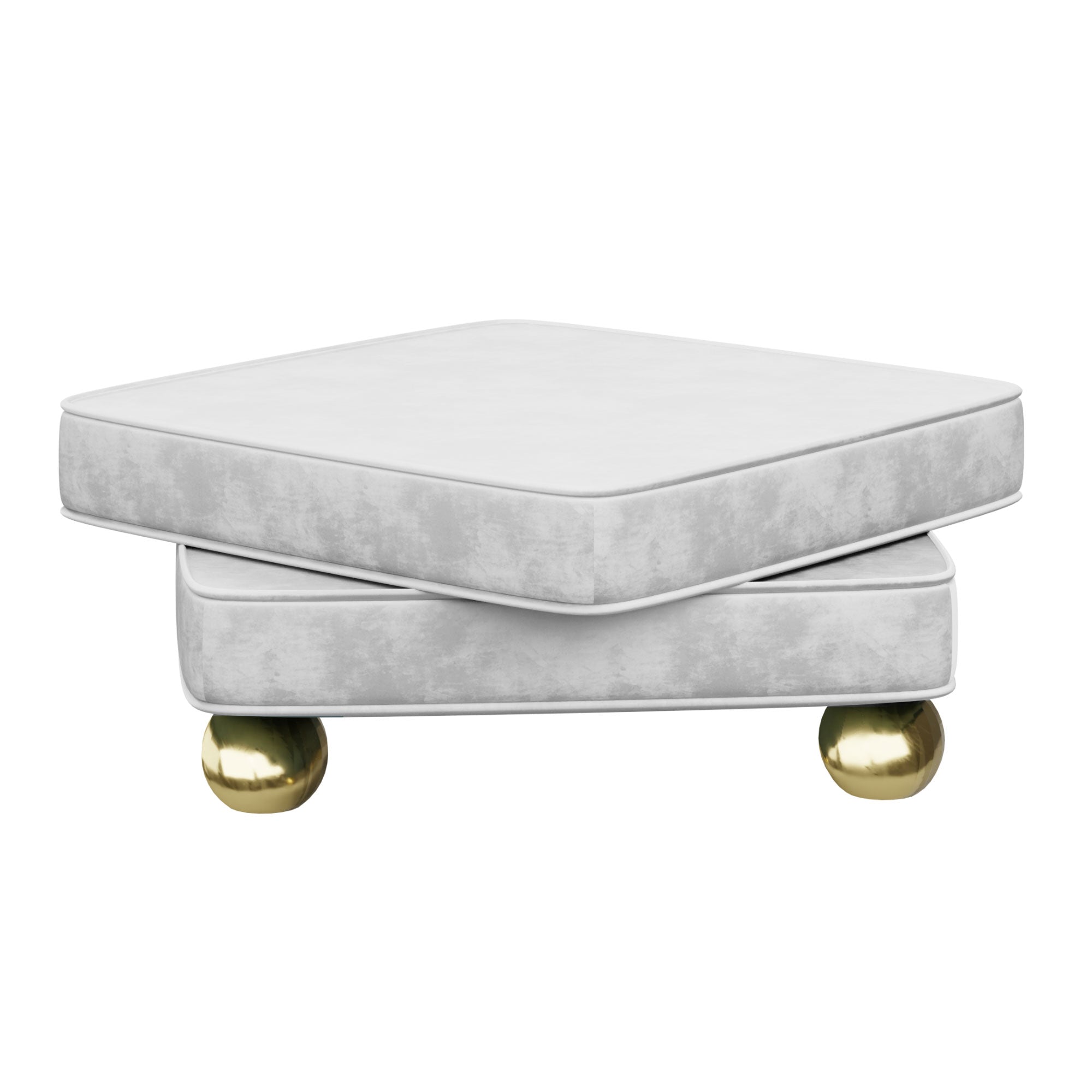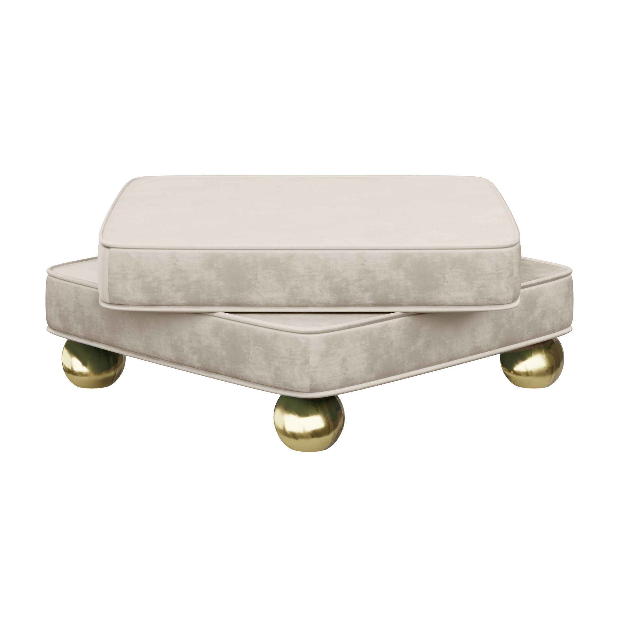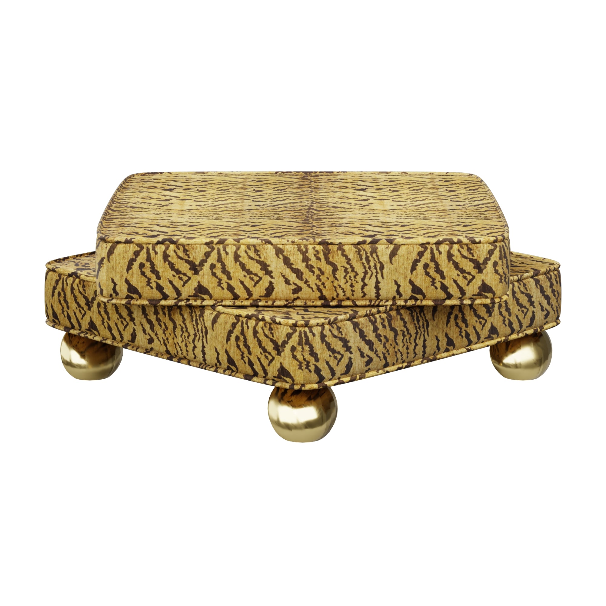 Rounded brass ball feet lift the form ever so slightly, the proportions are generous, it is as fabulous as it is functional. It works as a coffee table, an oversized ottoman, or the piece guests inevitably gravitate toward.
