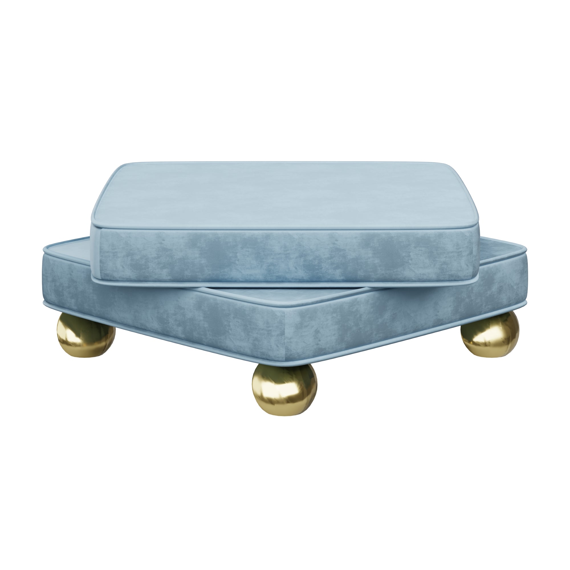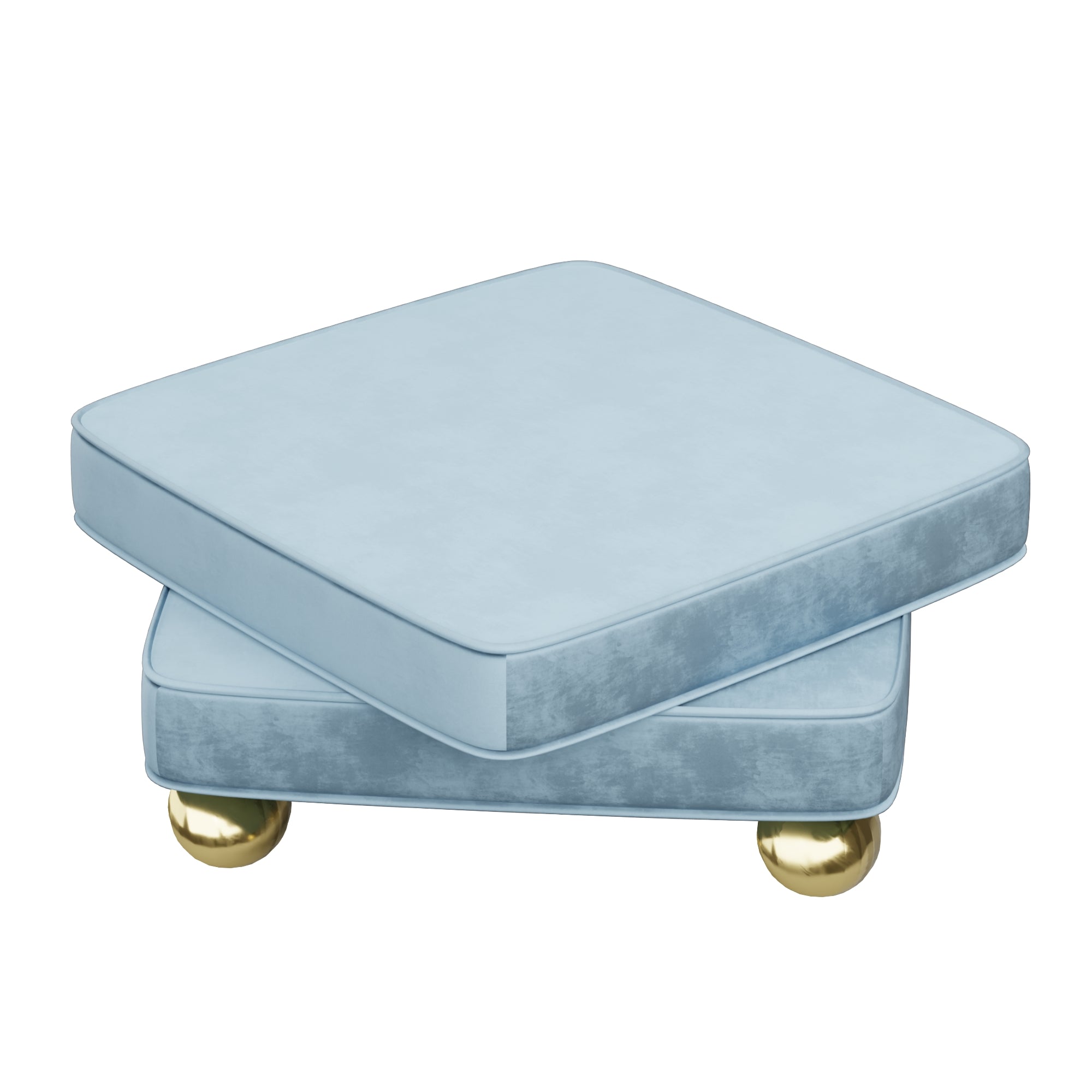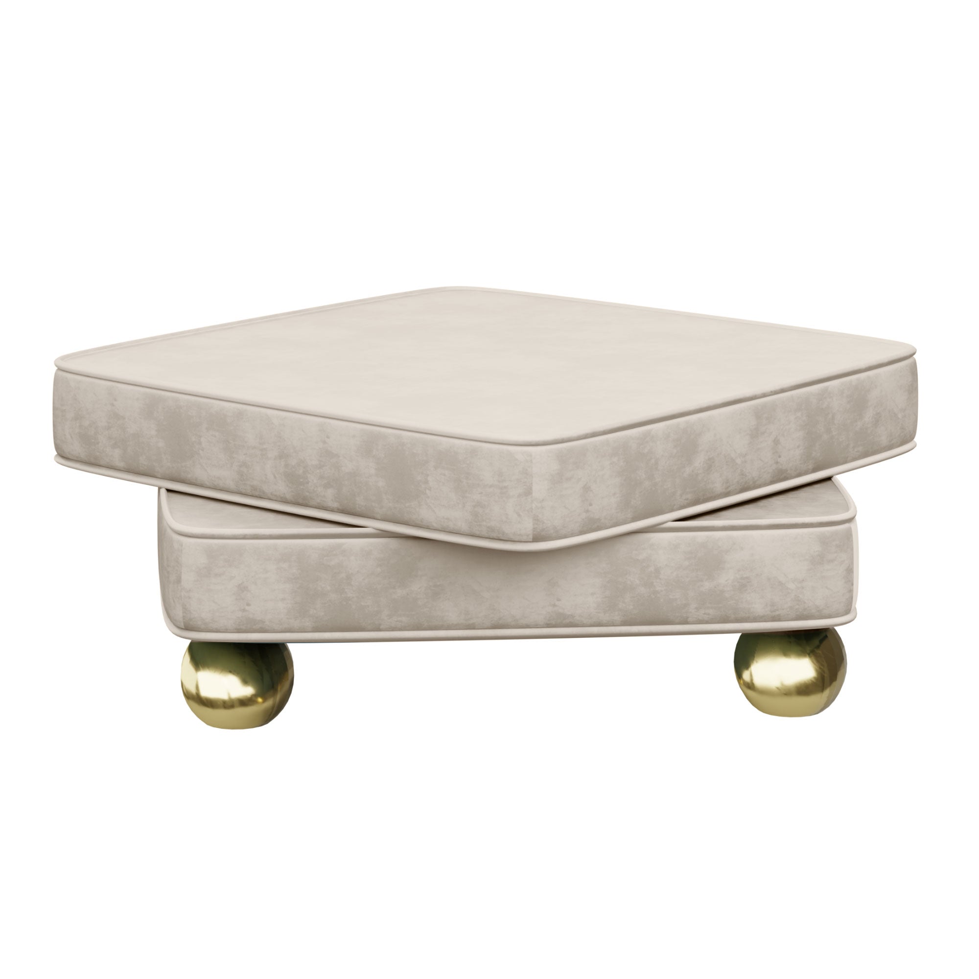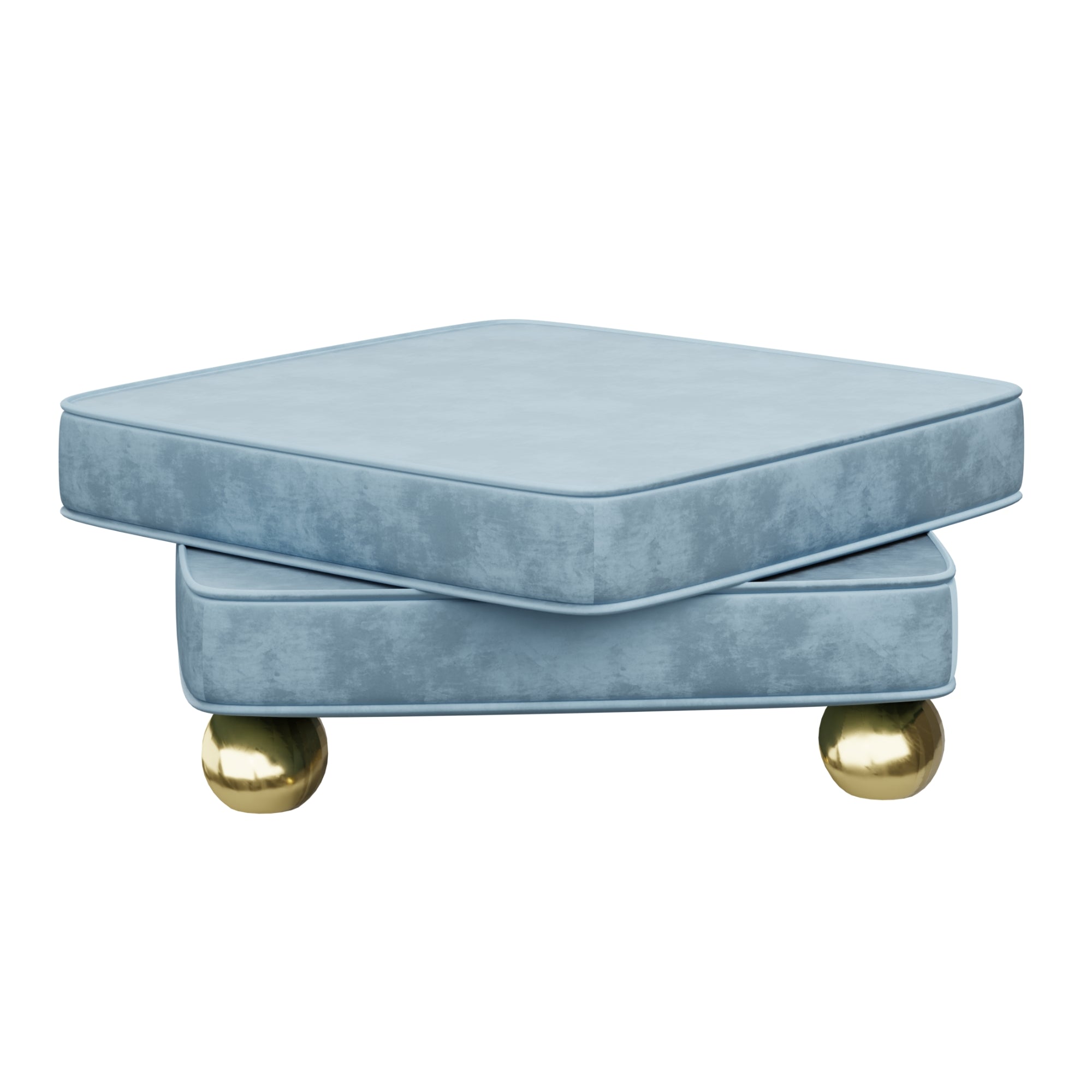 Rounded brass ball feet lift the form ever so slightly, the proportions are generous, it is as fabulous as it is functional. It works as a coffee table, an oversized ottoman, or the piece guests inevitably gravitate toward.
