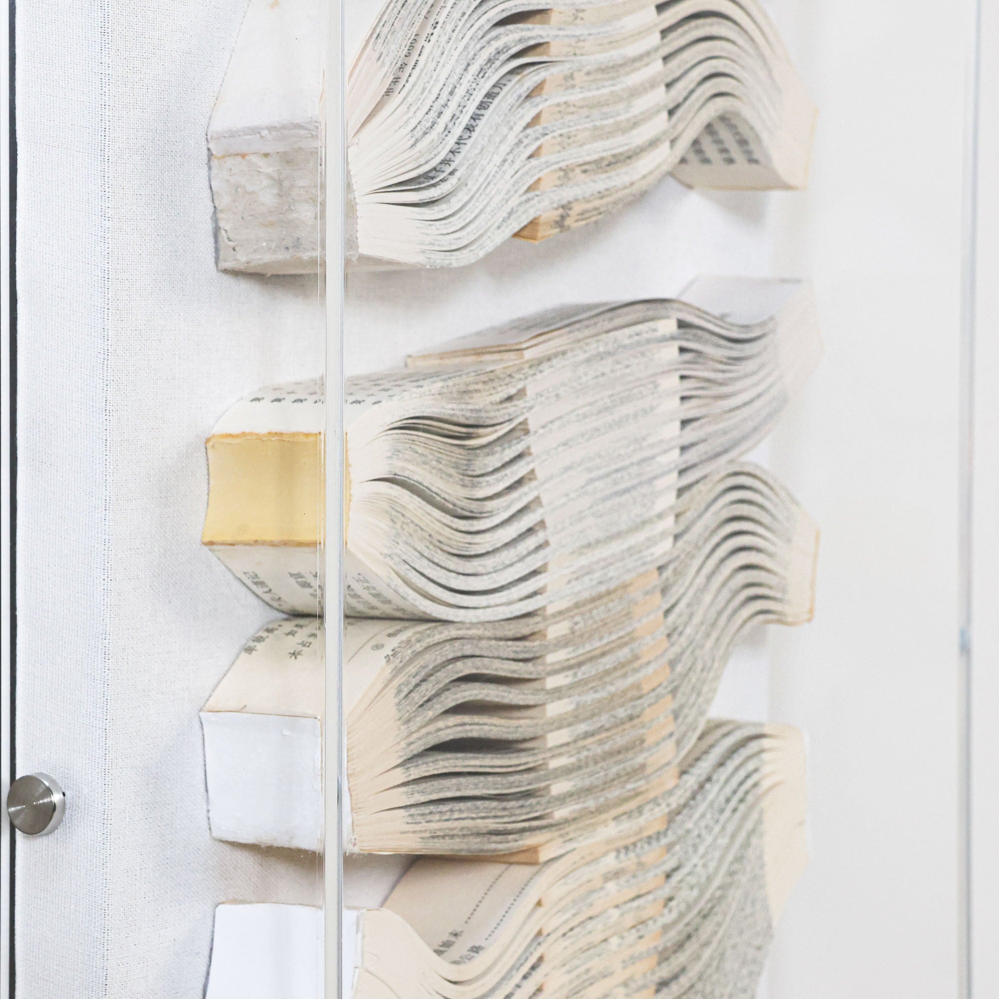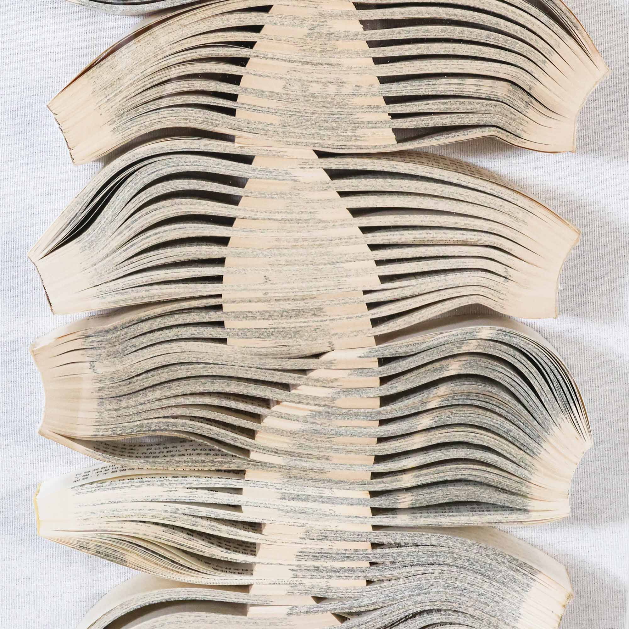 New from the Jen Lin studio, the Booked & Busy Triptych features stacks of books that have been cut and arranged with interwoven pages.