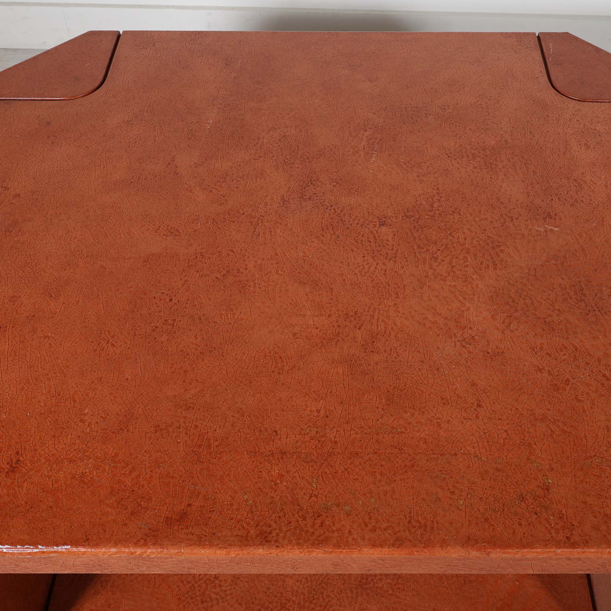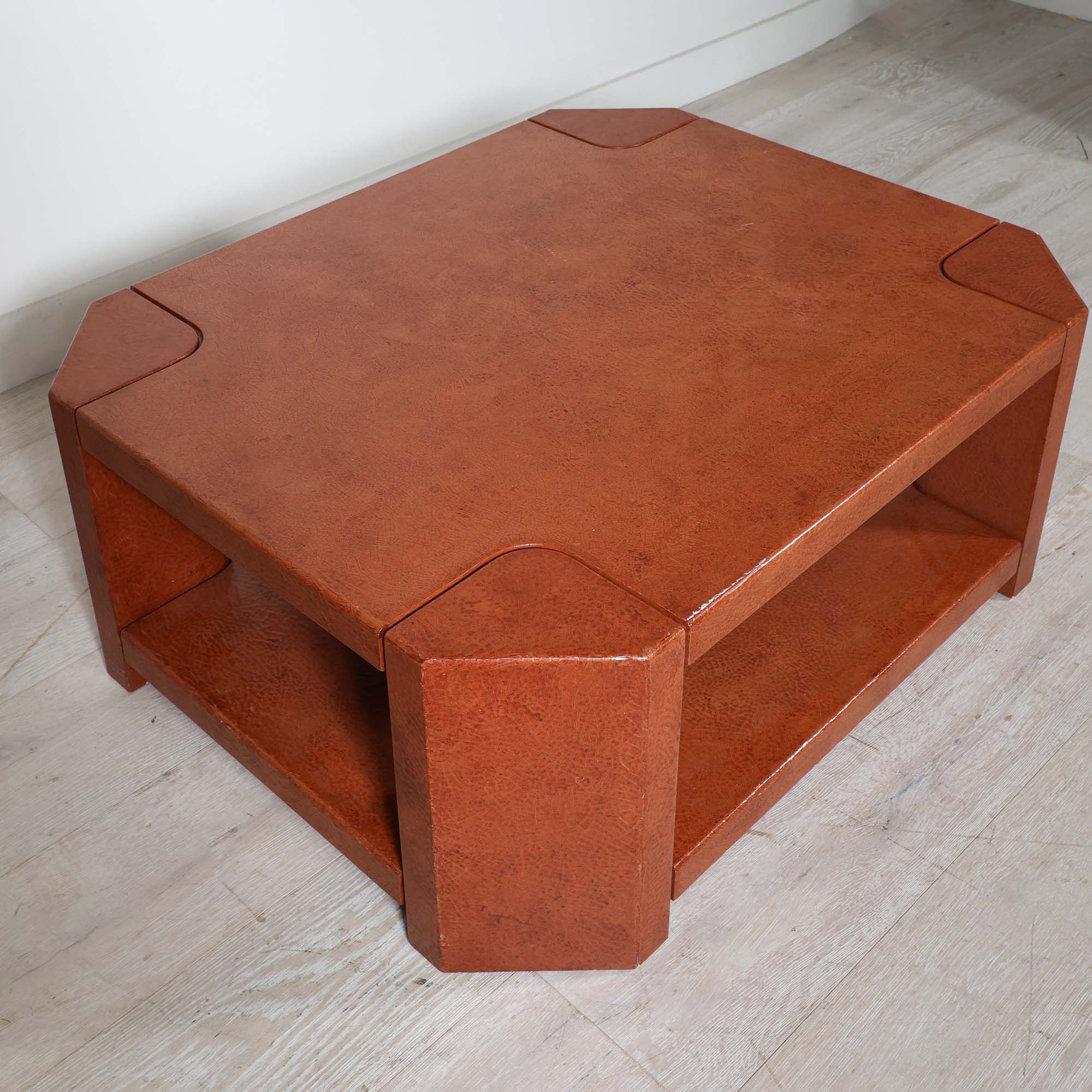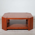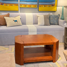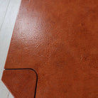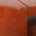 This vintage bull-nose coffee/side table is wrapped in leather with strong corners and a grounded silhouette, plus an open shelf for your favorite books or trinkets. The rich saddle color would bring warmth and charm to any space.