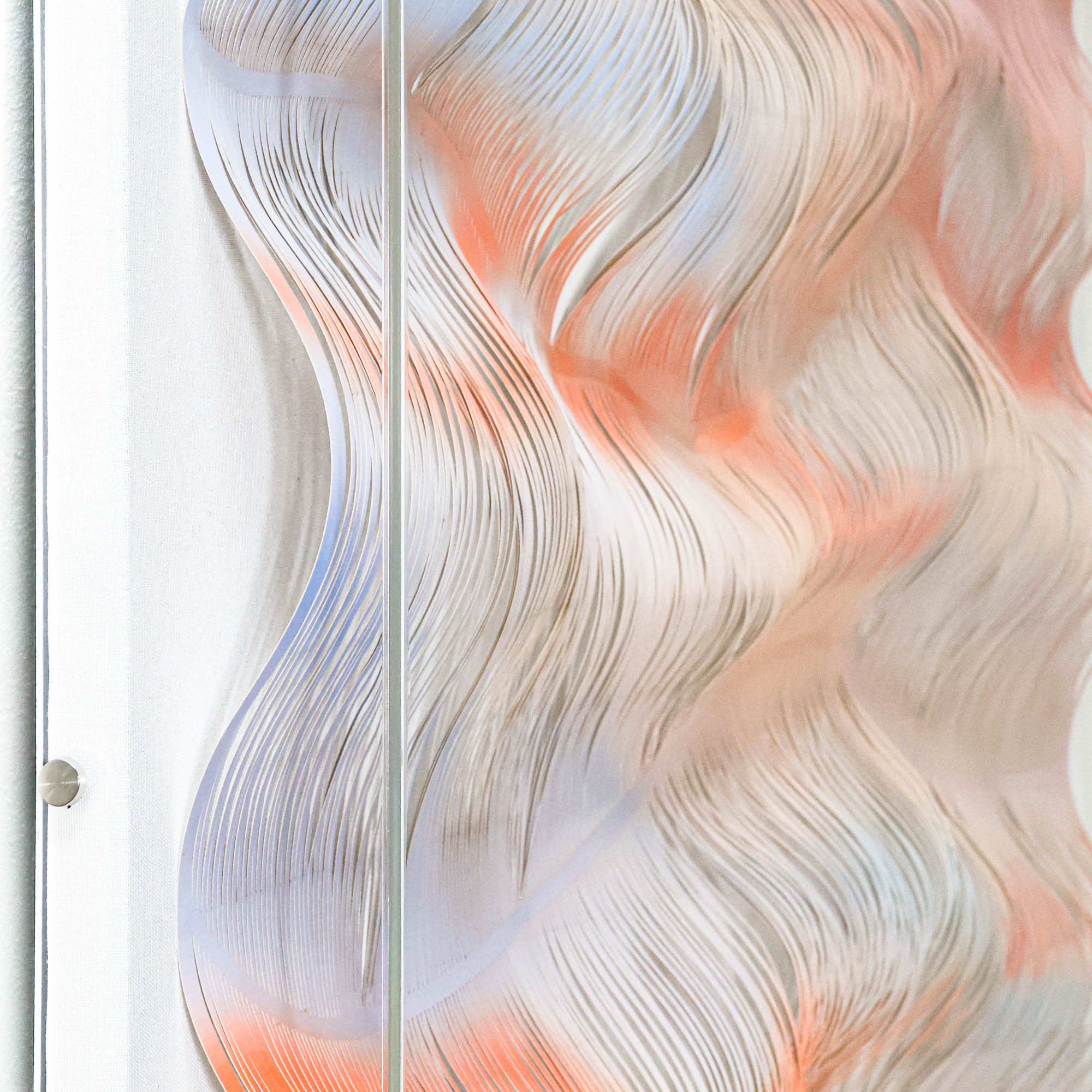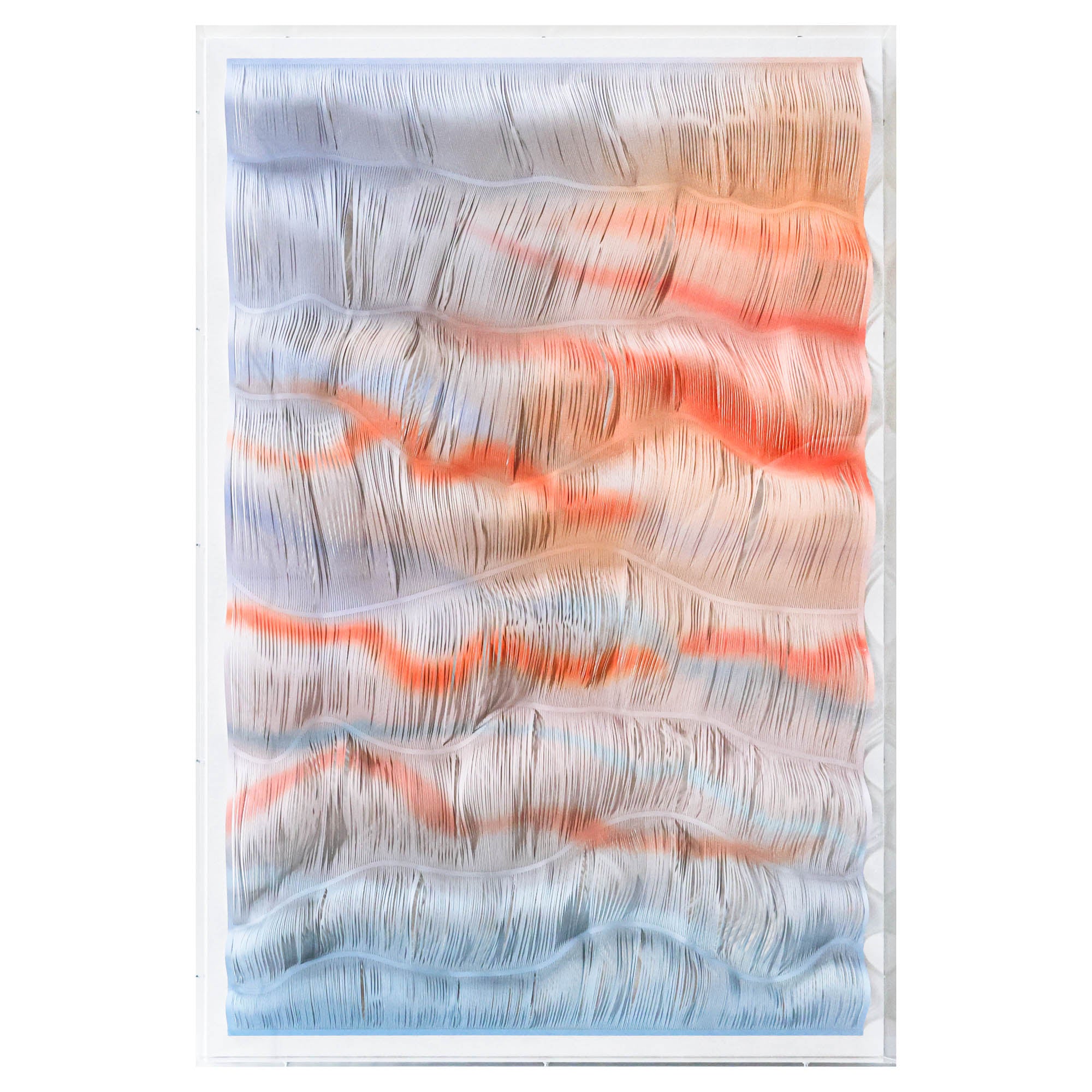 Mesmerizing and mellow, Lucy's World features paper that's been cut into strips while still connected, and artfully arranged inside of an acrylic shadowbox. This abstract take on the ocean is sure to catch some eyes in your space.