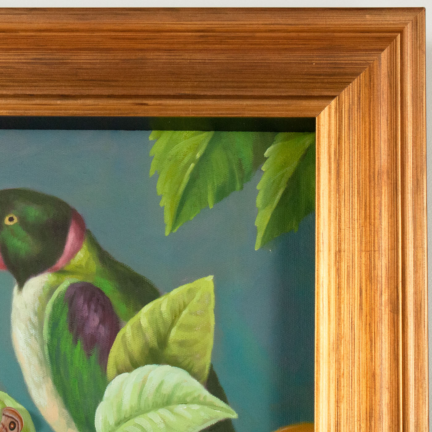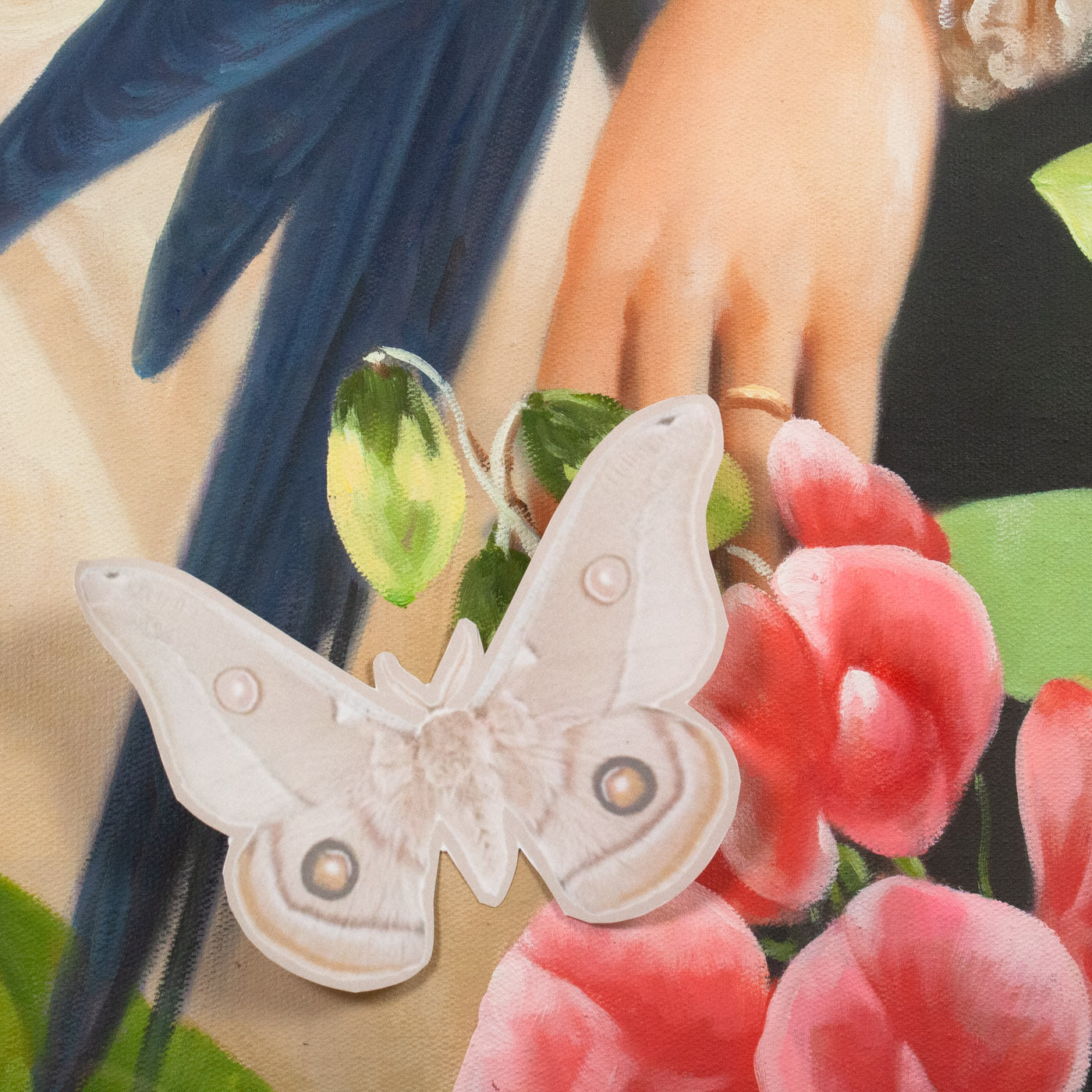 Beautifully blended and vibrantly verdant, DeLinda is printed on canvas with a swarm of moths placed delicately over her face.