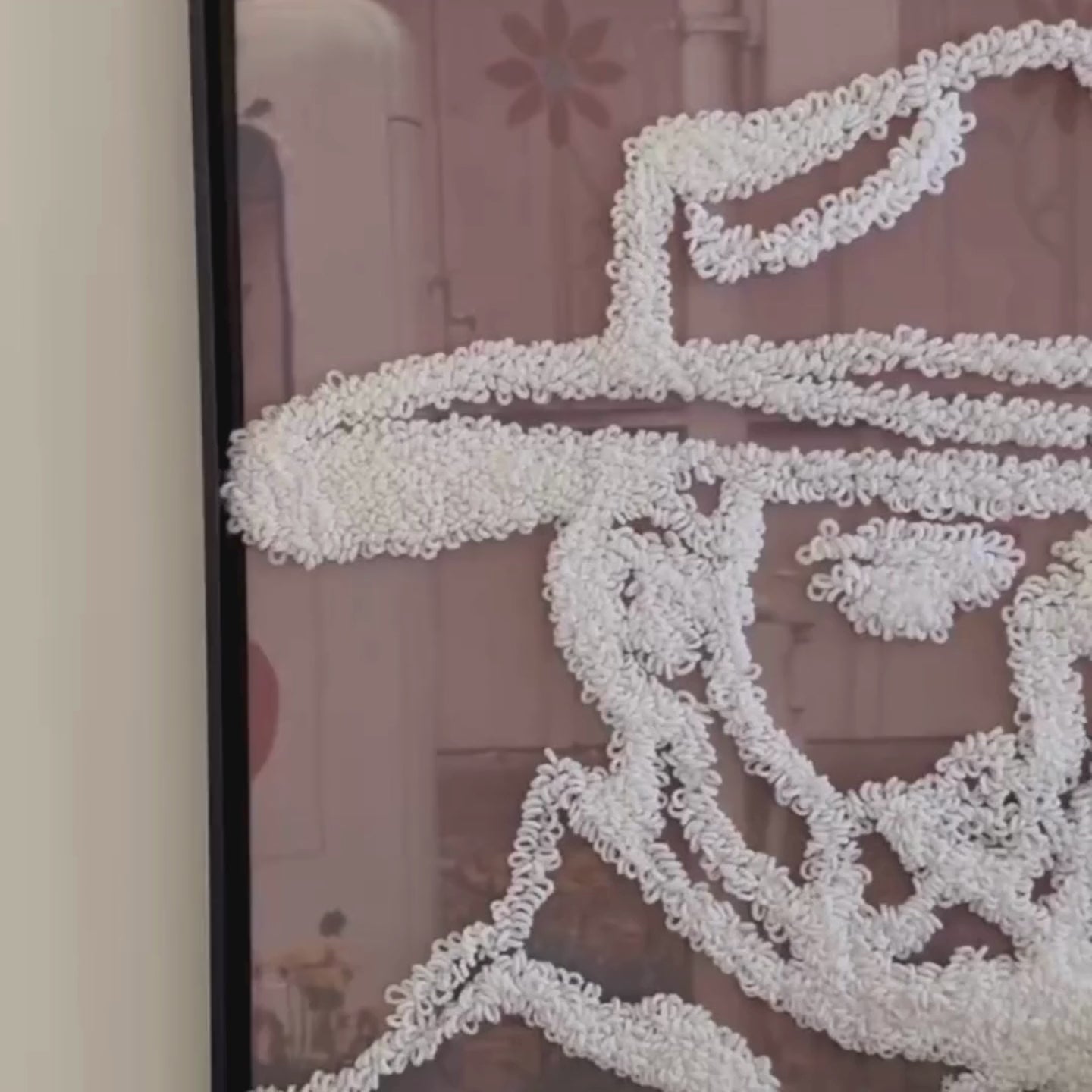 From the Tat Frederick studio, Jack features a yarn portrait of a cowboy on top of a vintage gas station photograph. Framed in black.