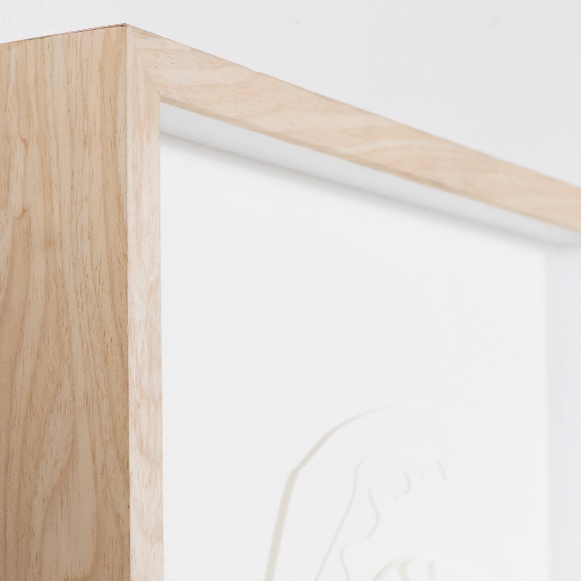 Loretta Lynn portrait made of hand cut paper by Tat Frederick. Framed in a blonde wood frame with a plexiglass panel.