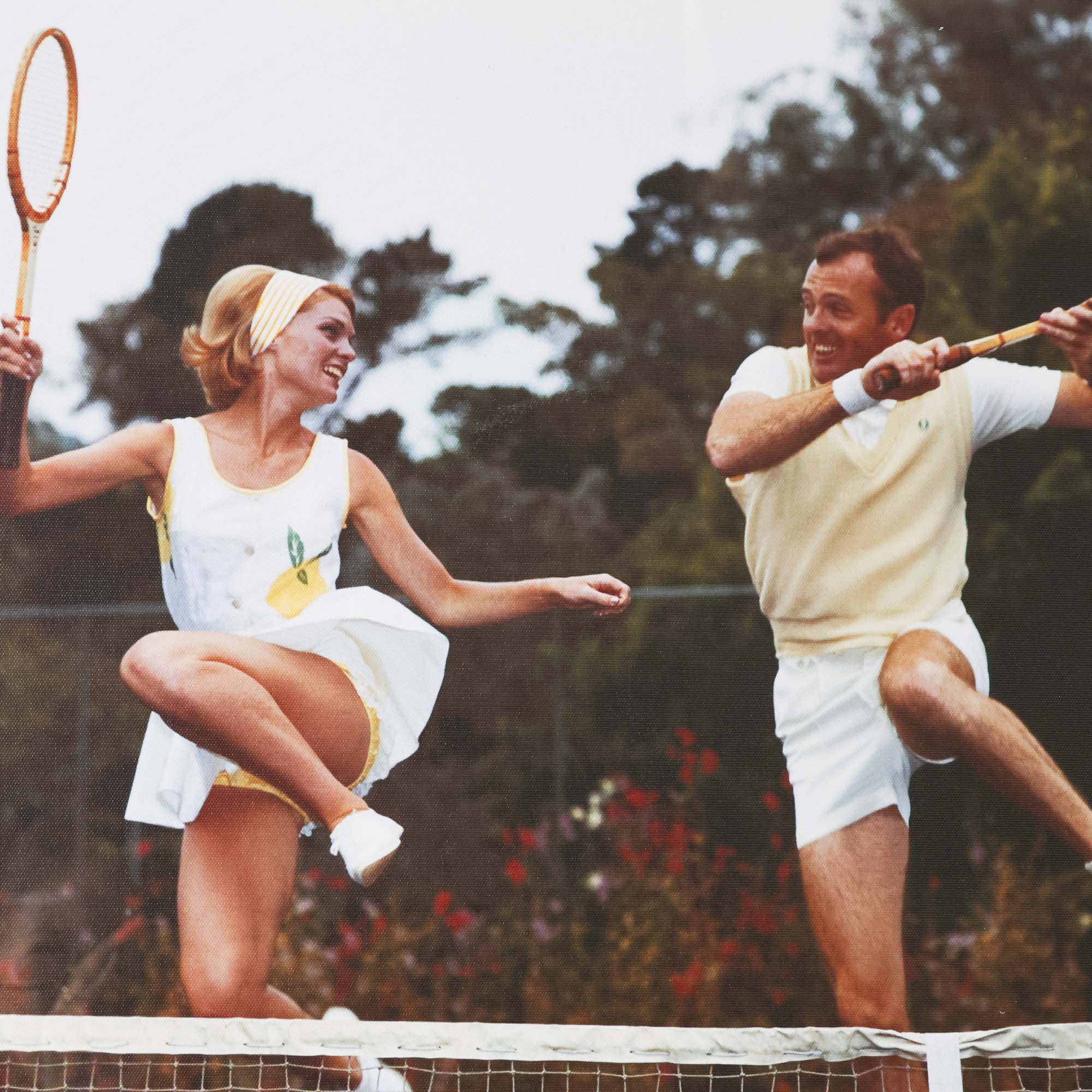 This vintage Tom Kelley photograph features a couple jumping gleefully on the court. For tennis lovers or anyone who appreciates a good rally, this canvas brings the spirit of the game and vintage style to your walls. Printed on archival paper with an ivory matte and white frame.