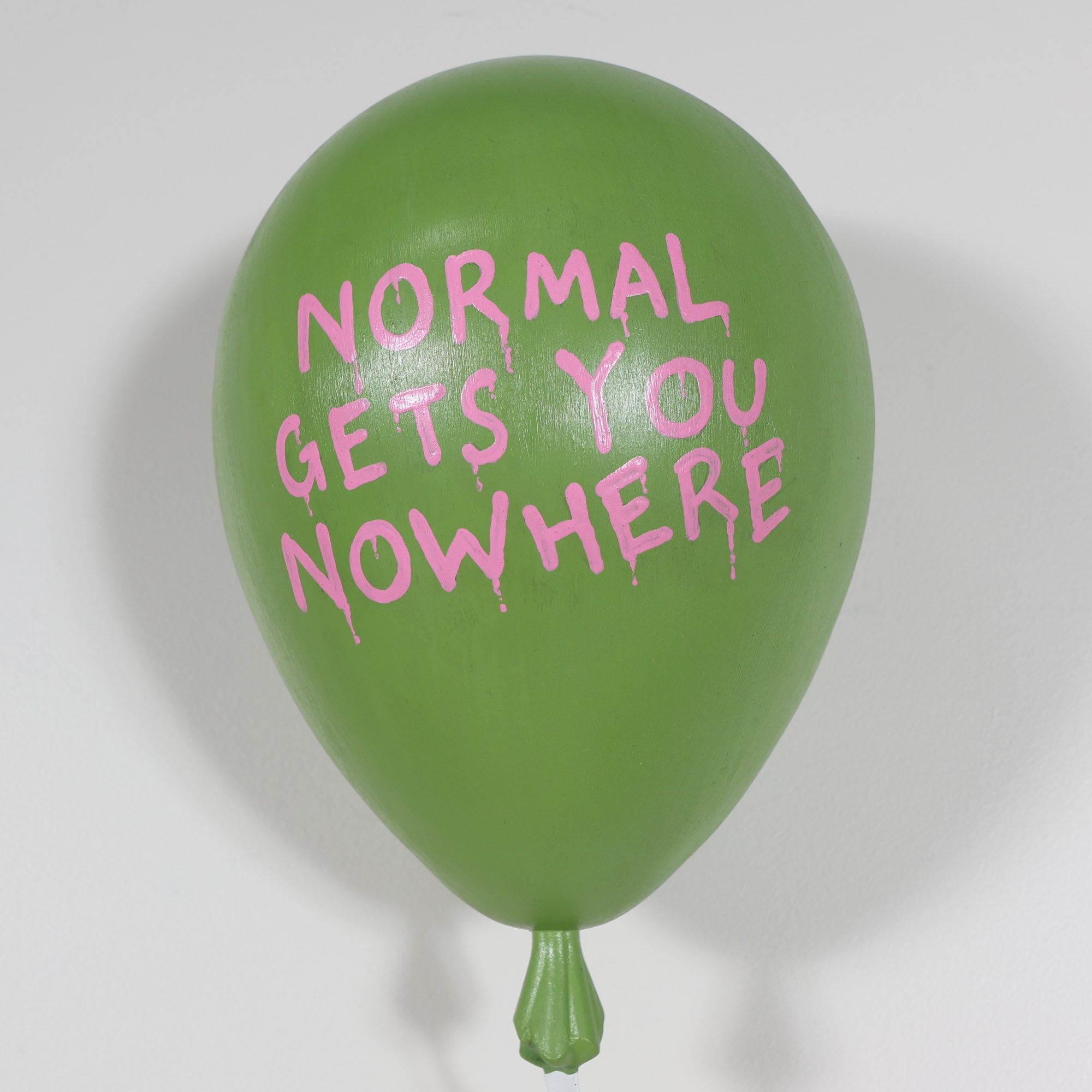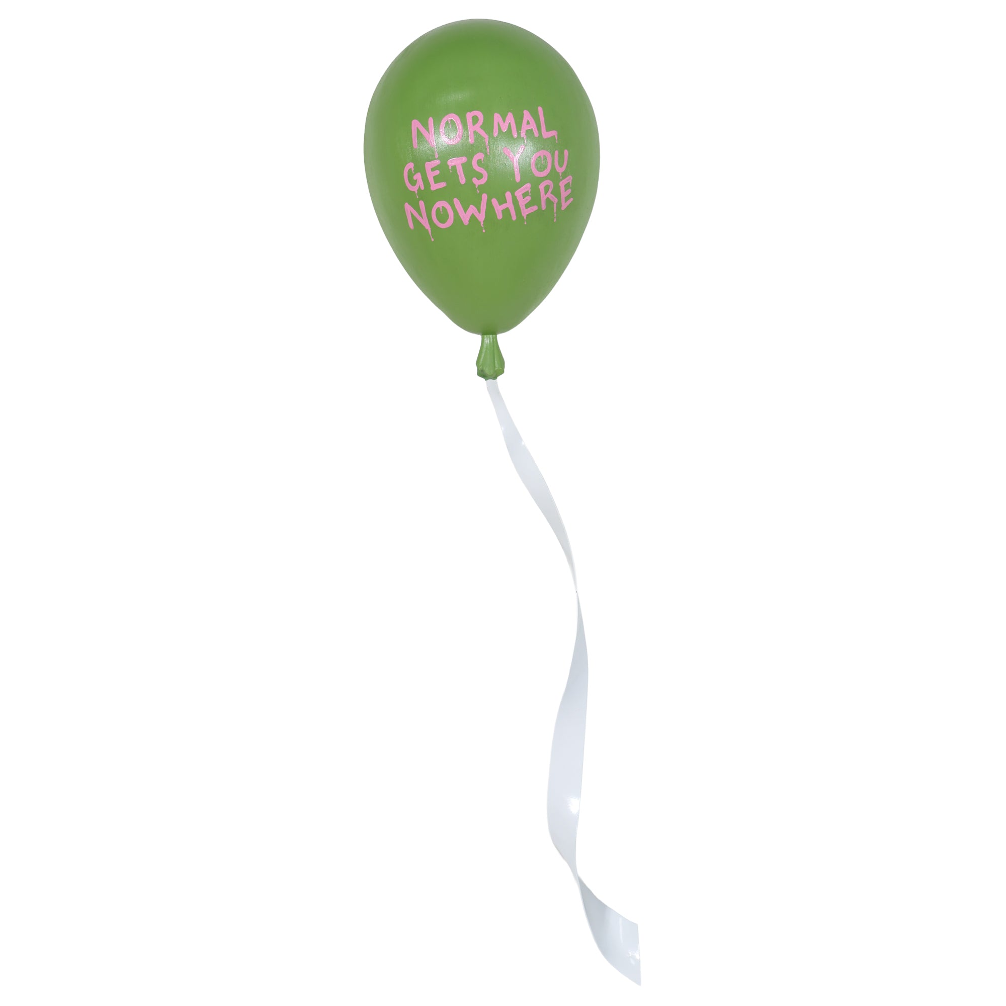 From the Tat Frederick studio, The Days is a 3D sculpted balloon, crafted in sleek metal, with a glossy bright green paint job that makes it POP! The lacquered ribbon detail adds an extra touch of realism, making it appear as if it’s floating effortlessly on your wall.