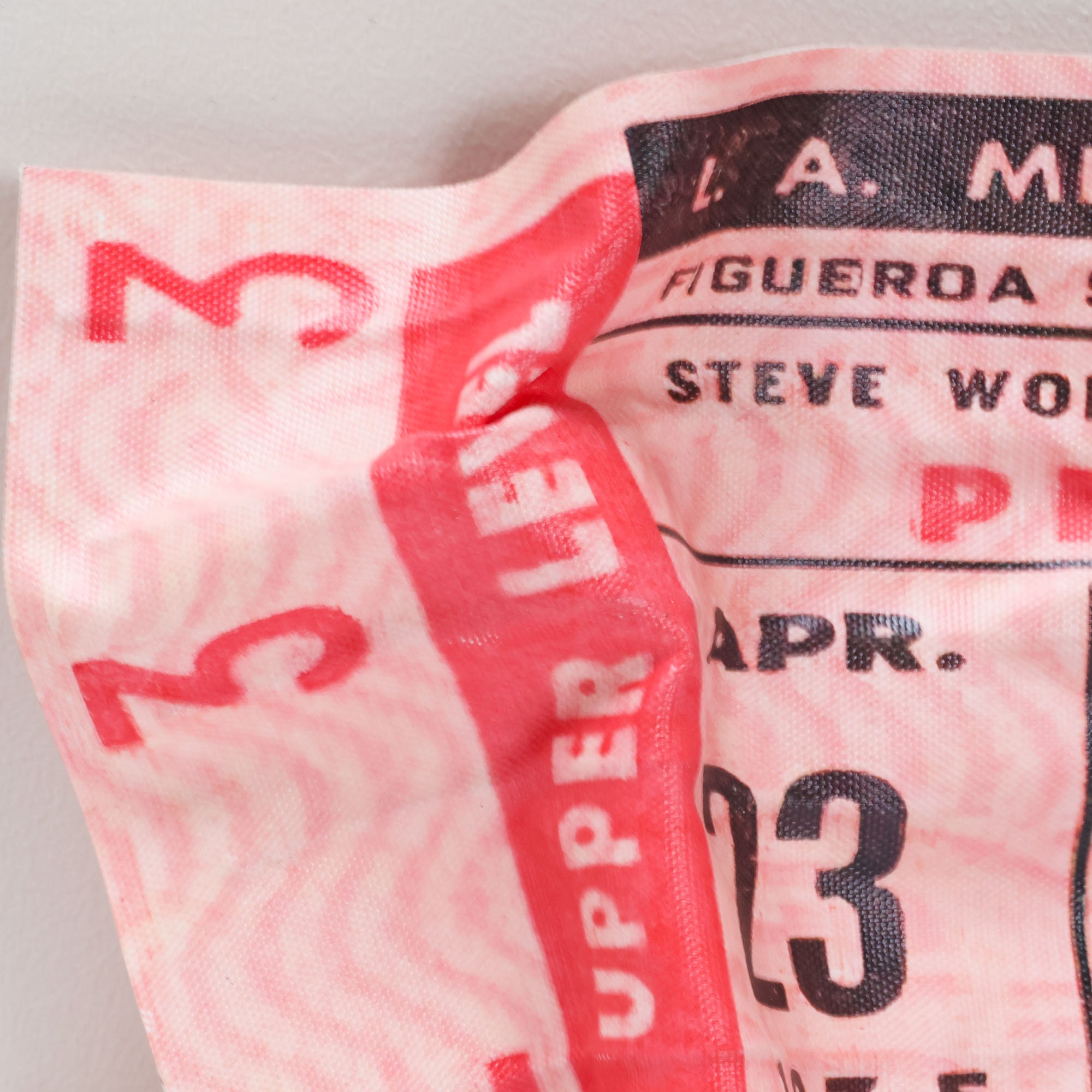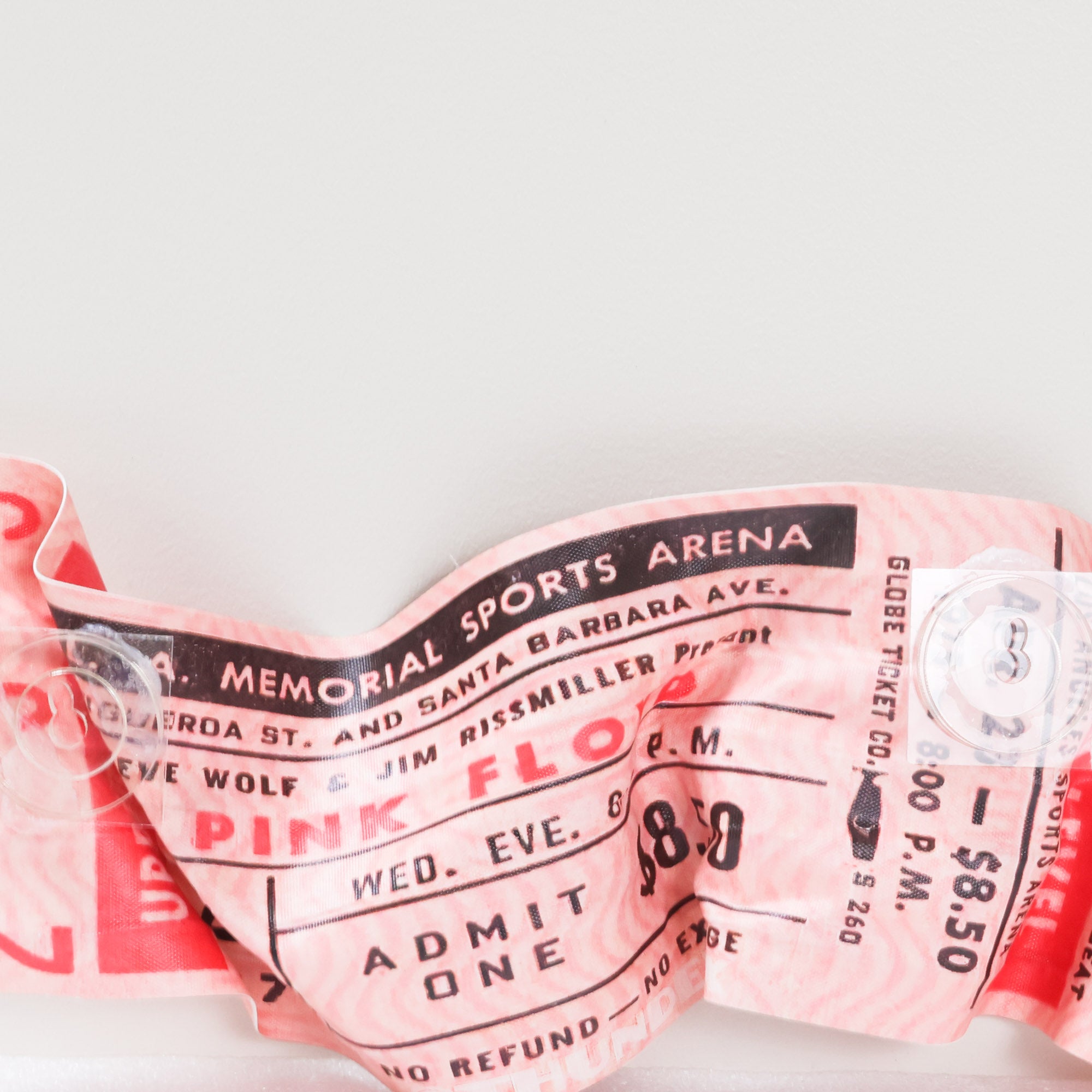 Just in from Tat Frederick, this 3D artwork features a Pink Floyd reproduction concert ticket. Printed on double-sided canvas with flexible wire inside to form the shape and two acrylic rings for hanging.