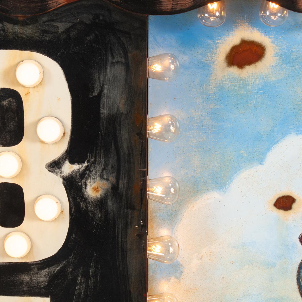 Cowgirl Bar light-up sign, made to look vintage by artist Garland Murphree. Two light settings with one flashing.