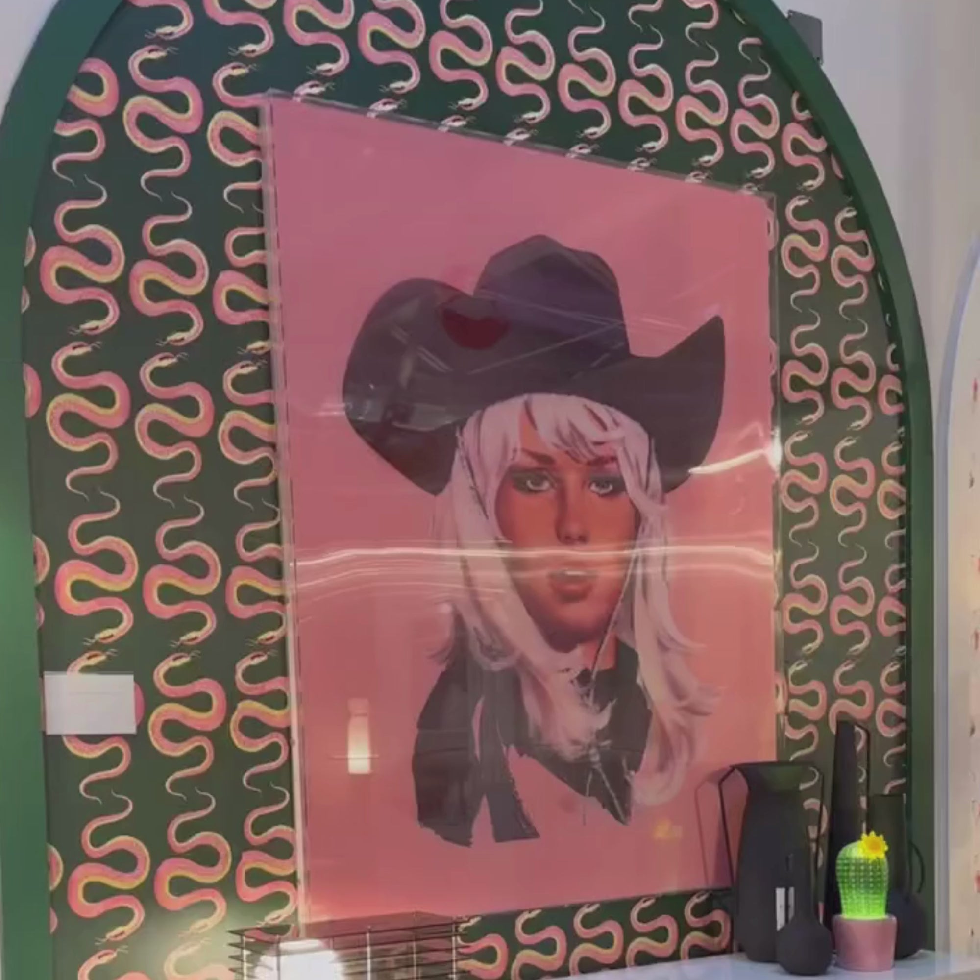 Depicting a cowgirl and her favorite red lippie, Dimestore Cowgirl features lenticular printing technology that creates the illusion of movement and depth when the viewer looks from different vantage points. You've got to see it to believe it! Fabulously sized to make a statement, this piece is ready for a moment.