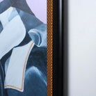 Stately modern printed equestrian art on silk cloth in a black and gold frame. This is an incredible piece!